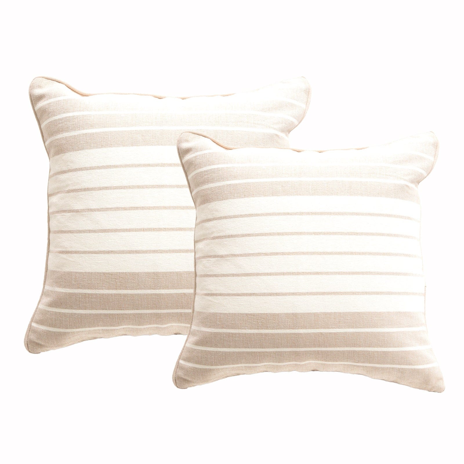 Renee Taylor Capri Stripe Stone washed Yarn-dyed Cushion Twin Pack 50 x 50 Cms Feather Filled Natural