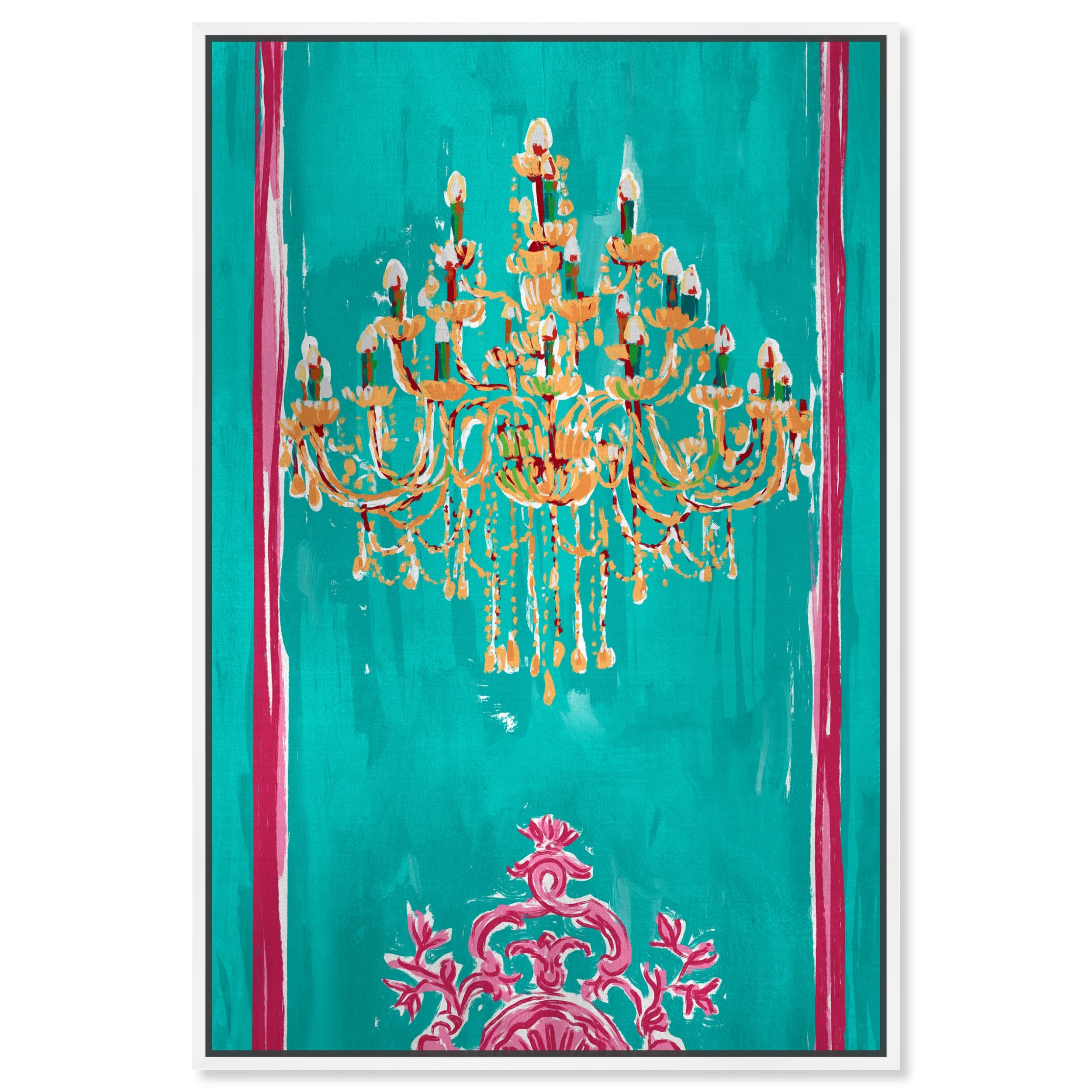 Oliver Gal 'Colorful Golden Glam Chandelier' Framed Canvas Art Print