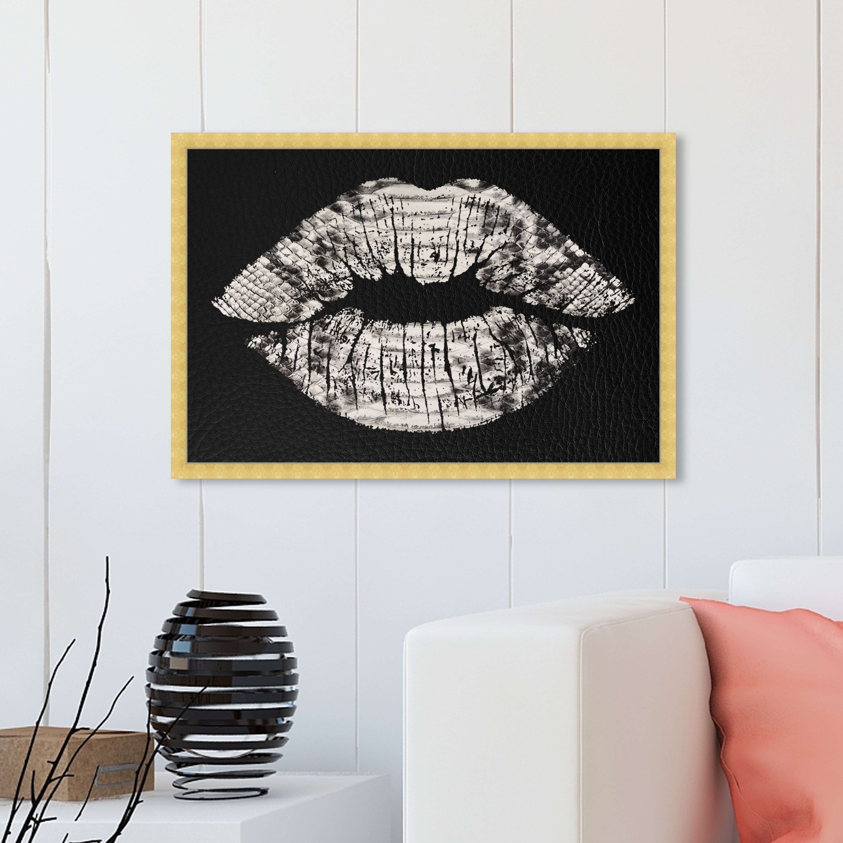 Oliver Gal 'Leather Kisses' Fashion and Glam Wall Art Framed Print Lips - Black, Gray