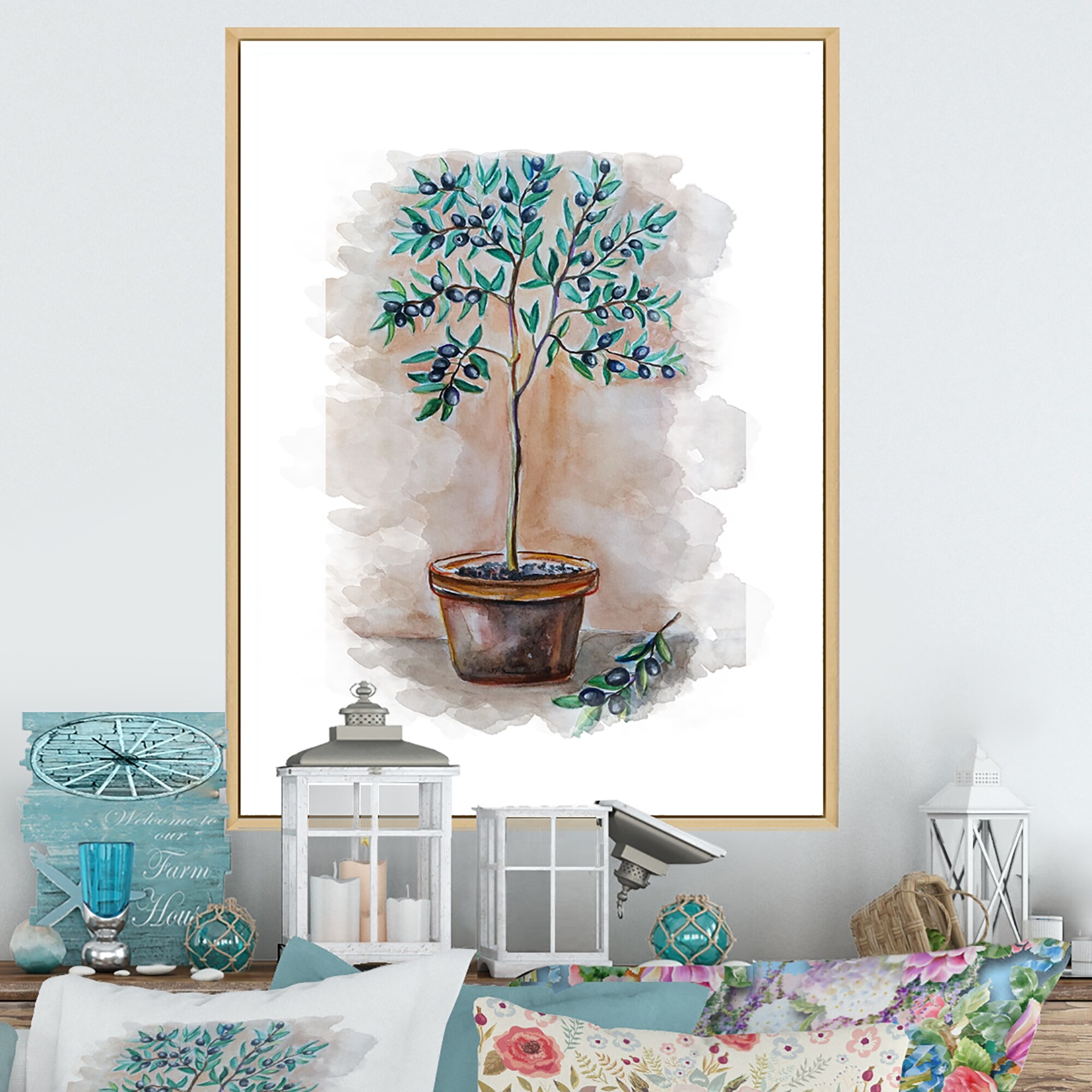 Designart "Green Olive Tree Pot" Traditional Framed Canvas Art Print