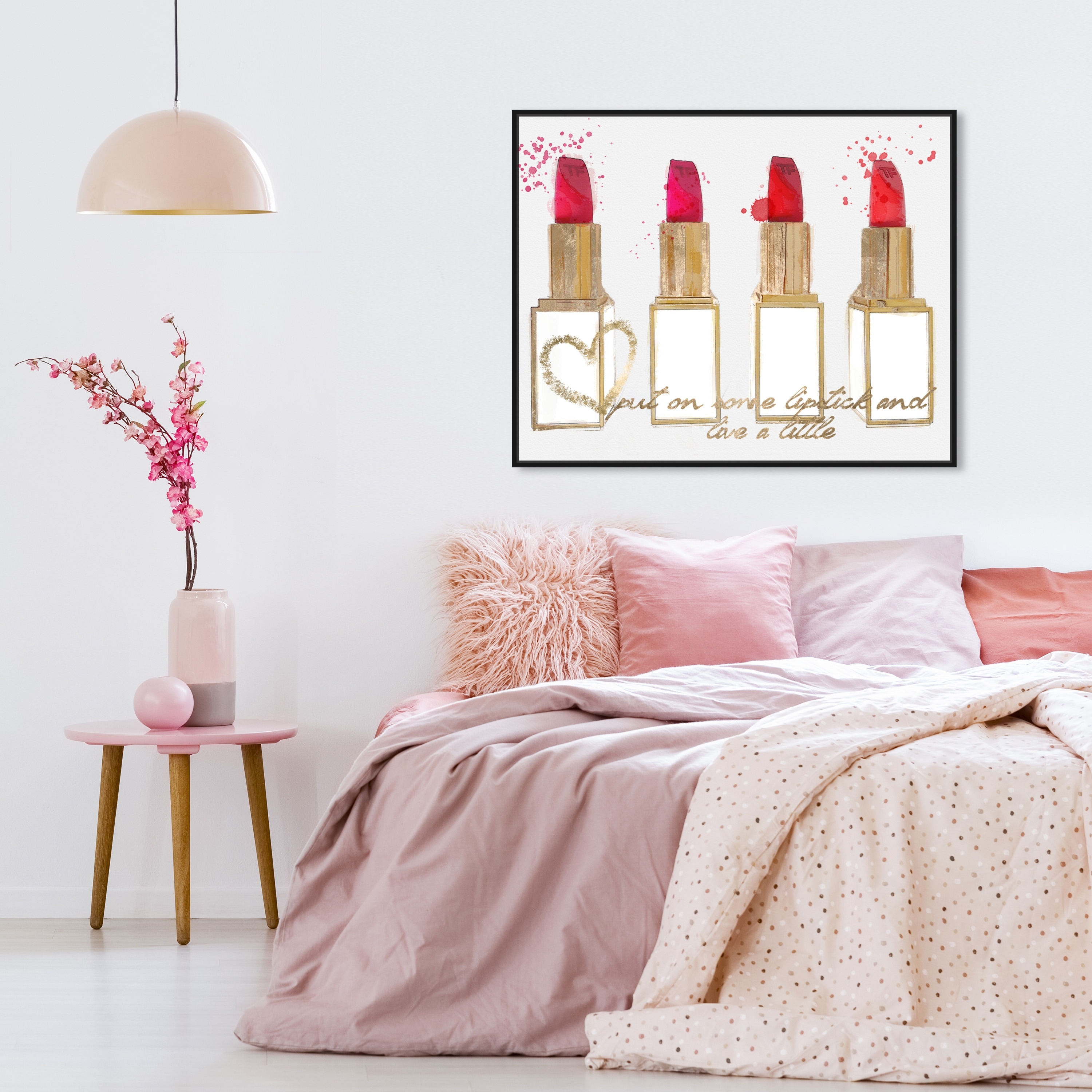 Oliver Gal 'Live a Little' Fashion and Glam Wall Art Framed Canvas Print Makeup - Gold, Pink