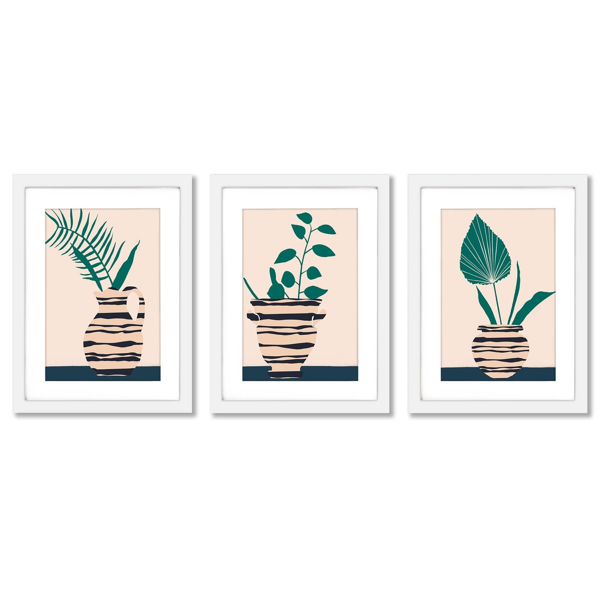Summer Floral Modern Tropical Modern Tropical - 3 Piece Framed Gallery Art Set
