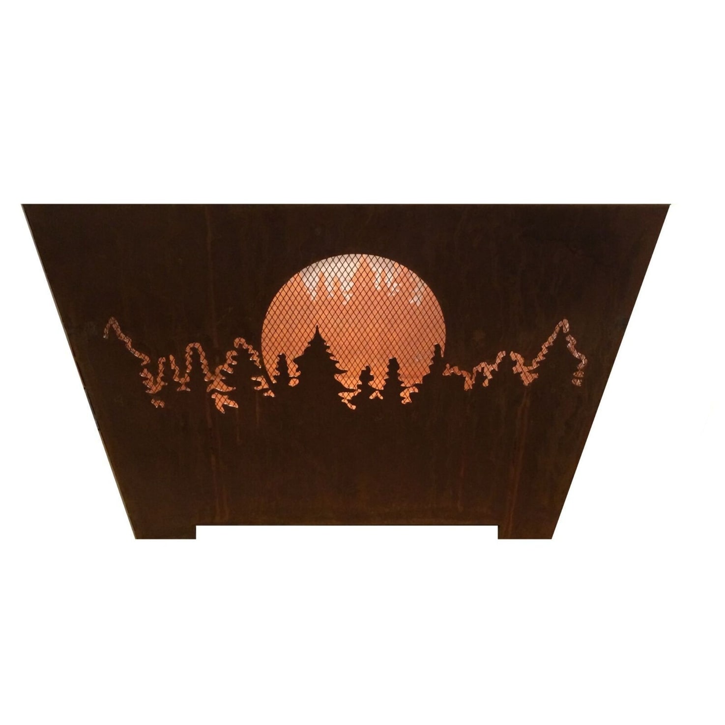 24" Brown Rustic Finish Forest and Moon Square Outdoor Fire Basket