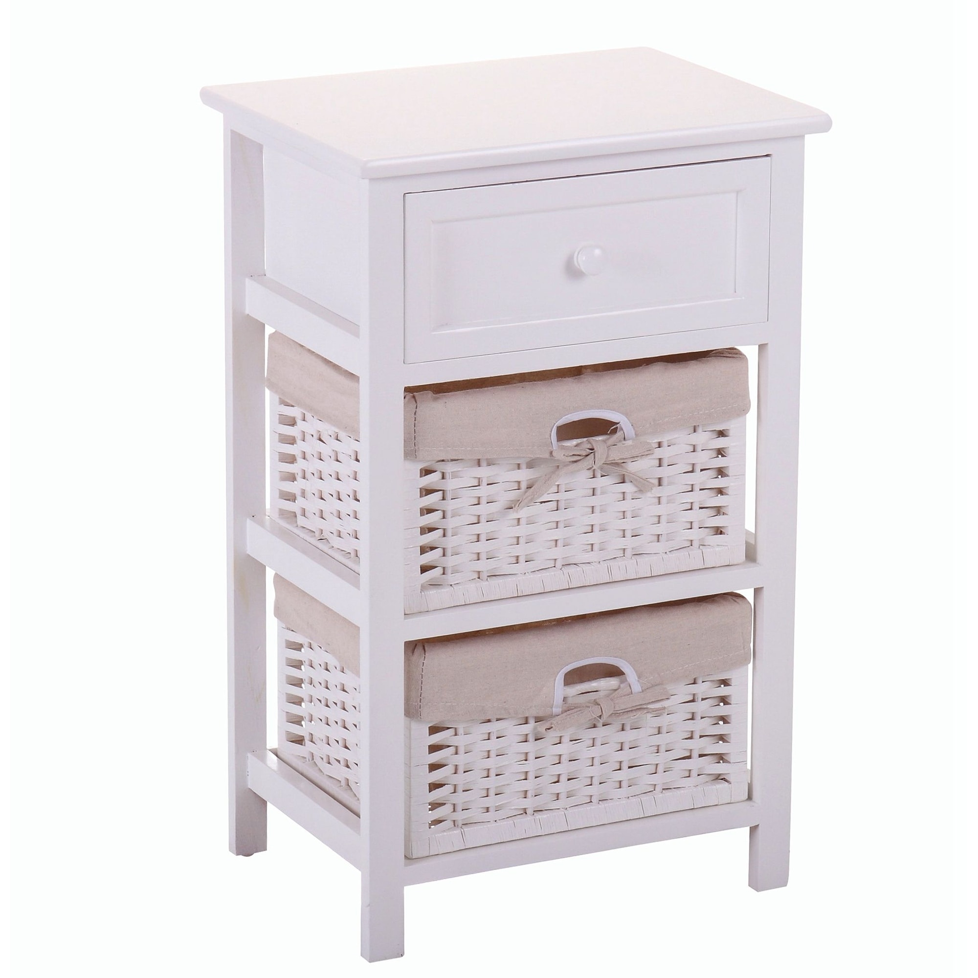 Drawer Nightstand with Two Removable Baskets, Storage Bedside, White