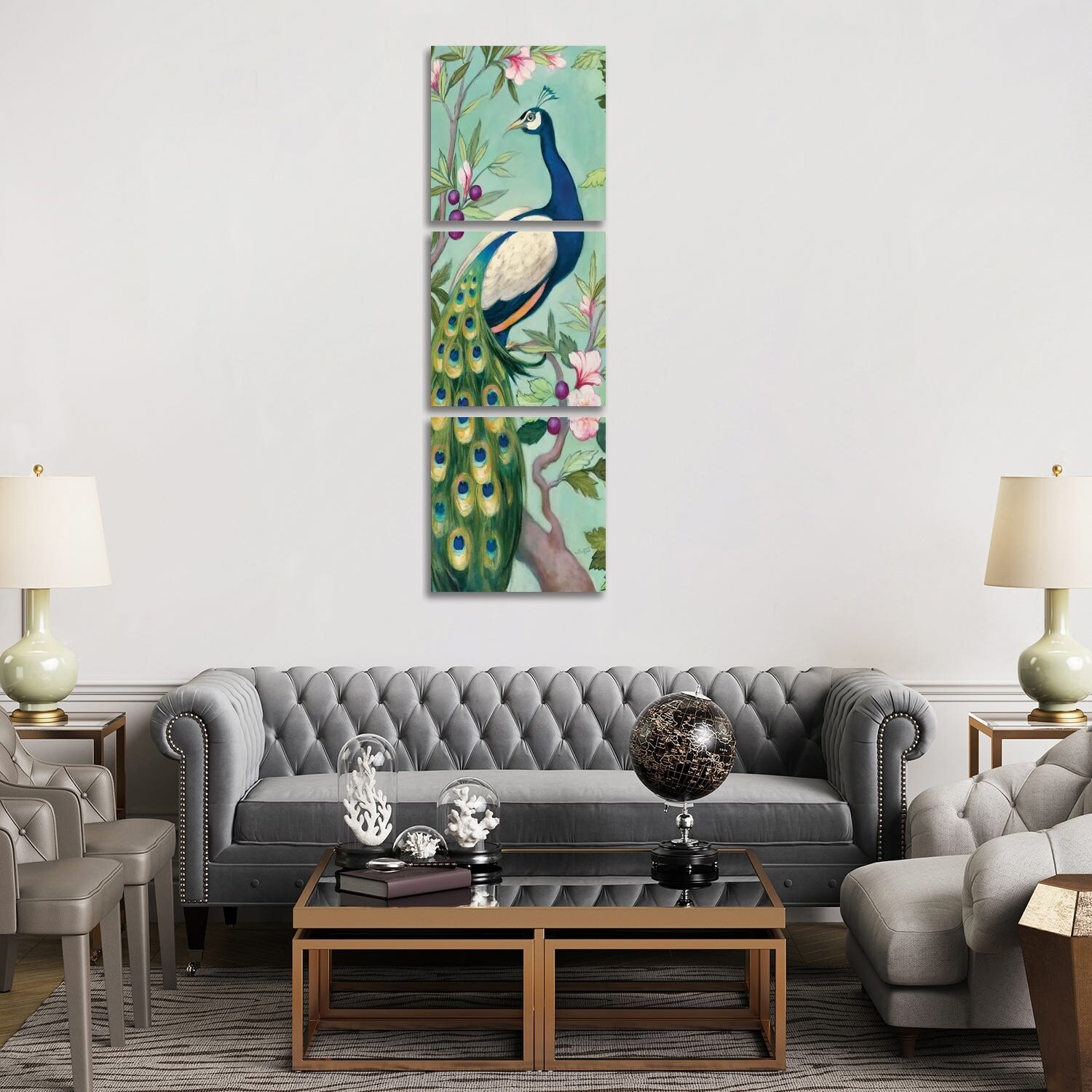 iCanvas "Pretty Peacock II Crop" by Julia Purinton 3-Piece Canvas Wall Art Set