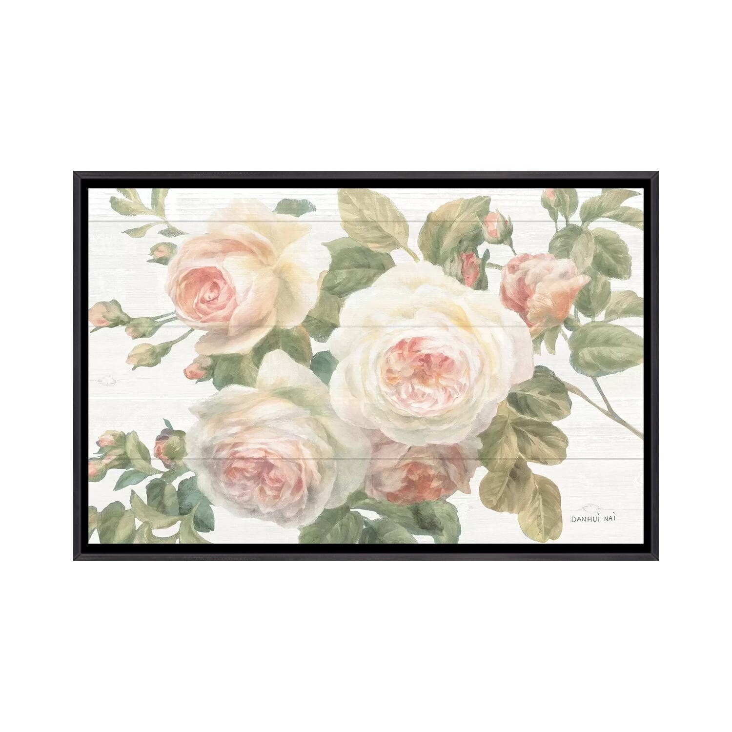 iCanvas "Vintage Roses White on Shiplap Crop" by Danhui Nai Framed Canvas Print