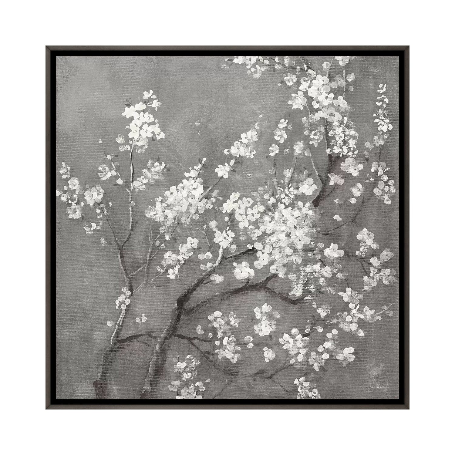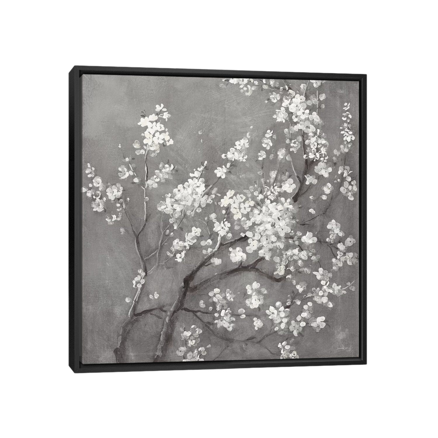 iCanvas "White Cherry Blossoms I on Grey Crop" by Danhui Nai Framed Canvas Print