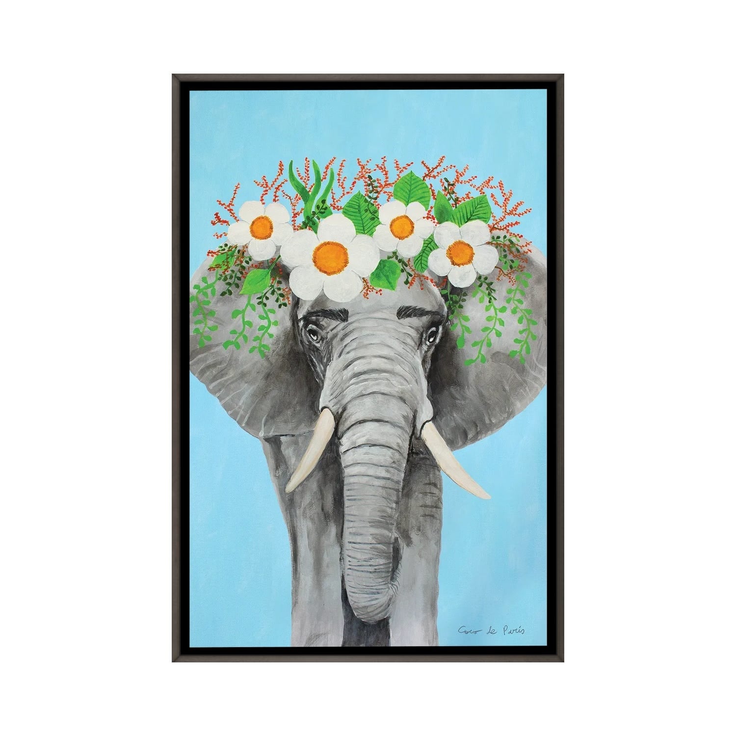iCanvas "Frida Kahlo Elephant - Blue" by Coco de Paris Framed