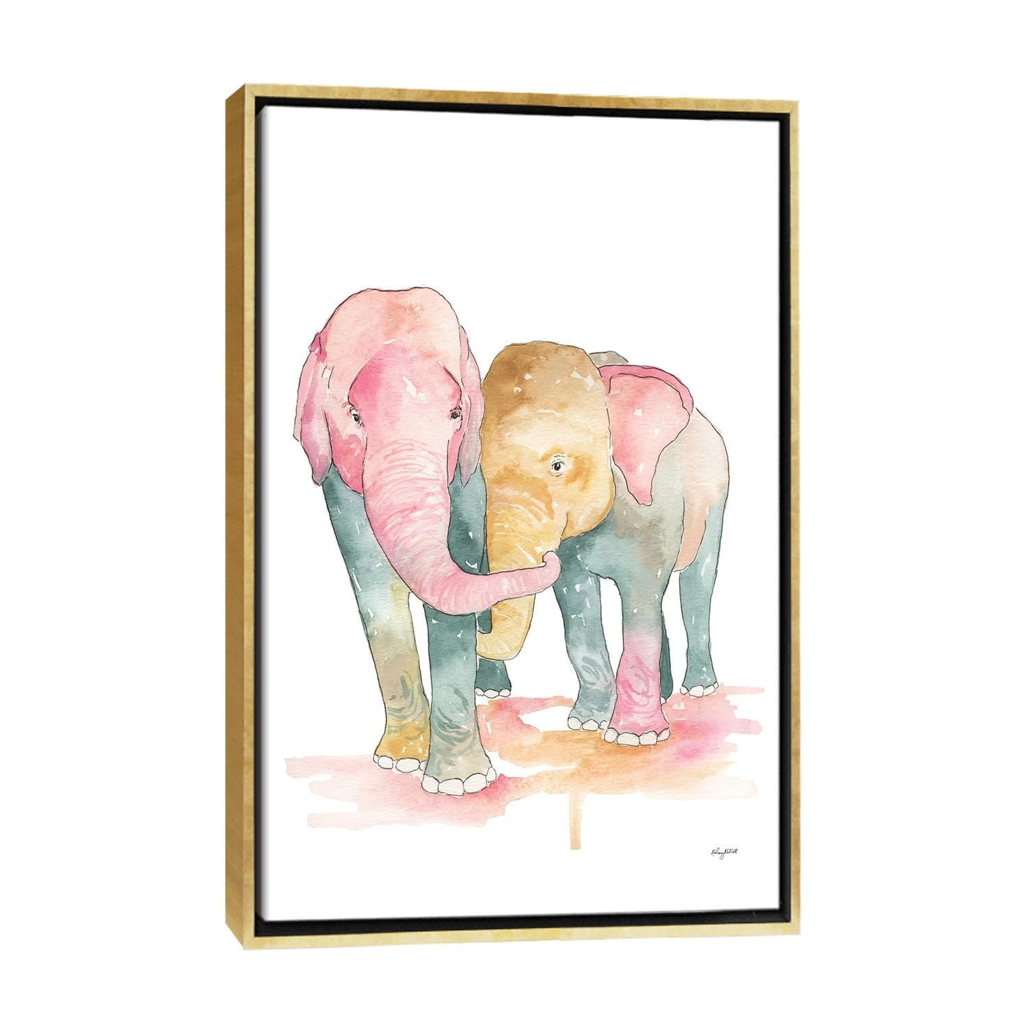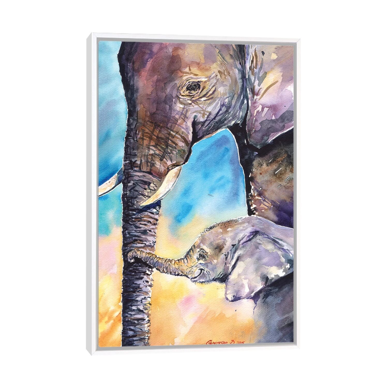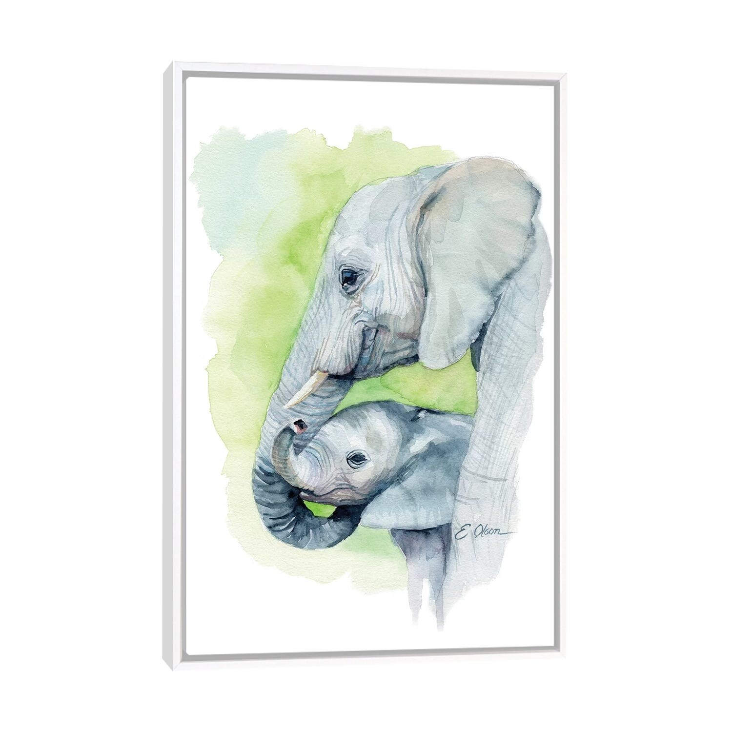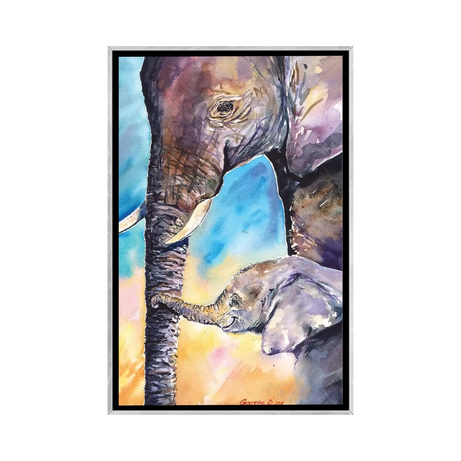 iCanvas "Mother and Baby Elephants I" by Watercolor Luv Framed Canvas Print