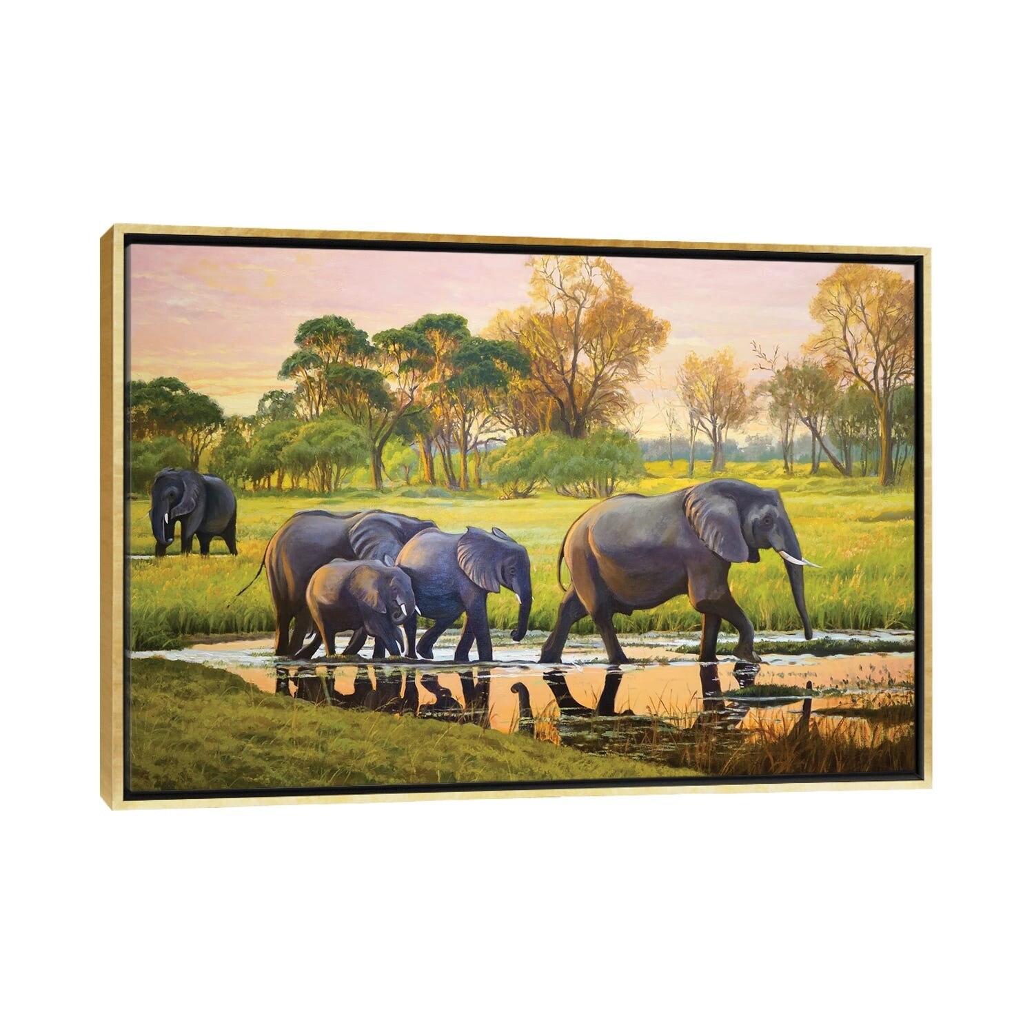 iCanvas "Elephants At Sunset" by Evgeniya Roslik Framed