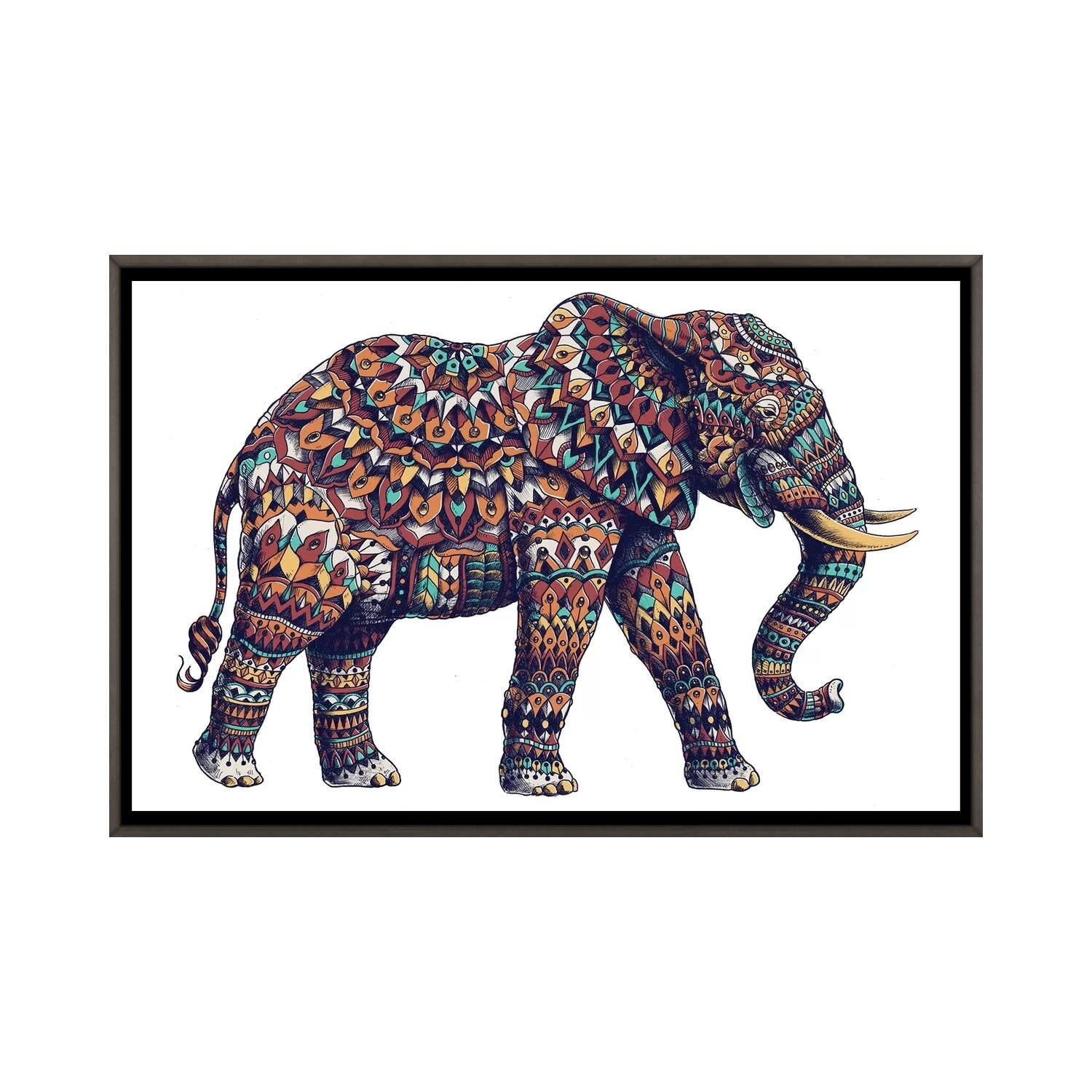 iCanvas "Ornate Elephant II in Color II" by Bioworkz Framed