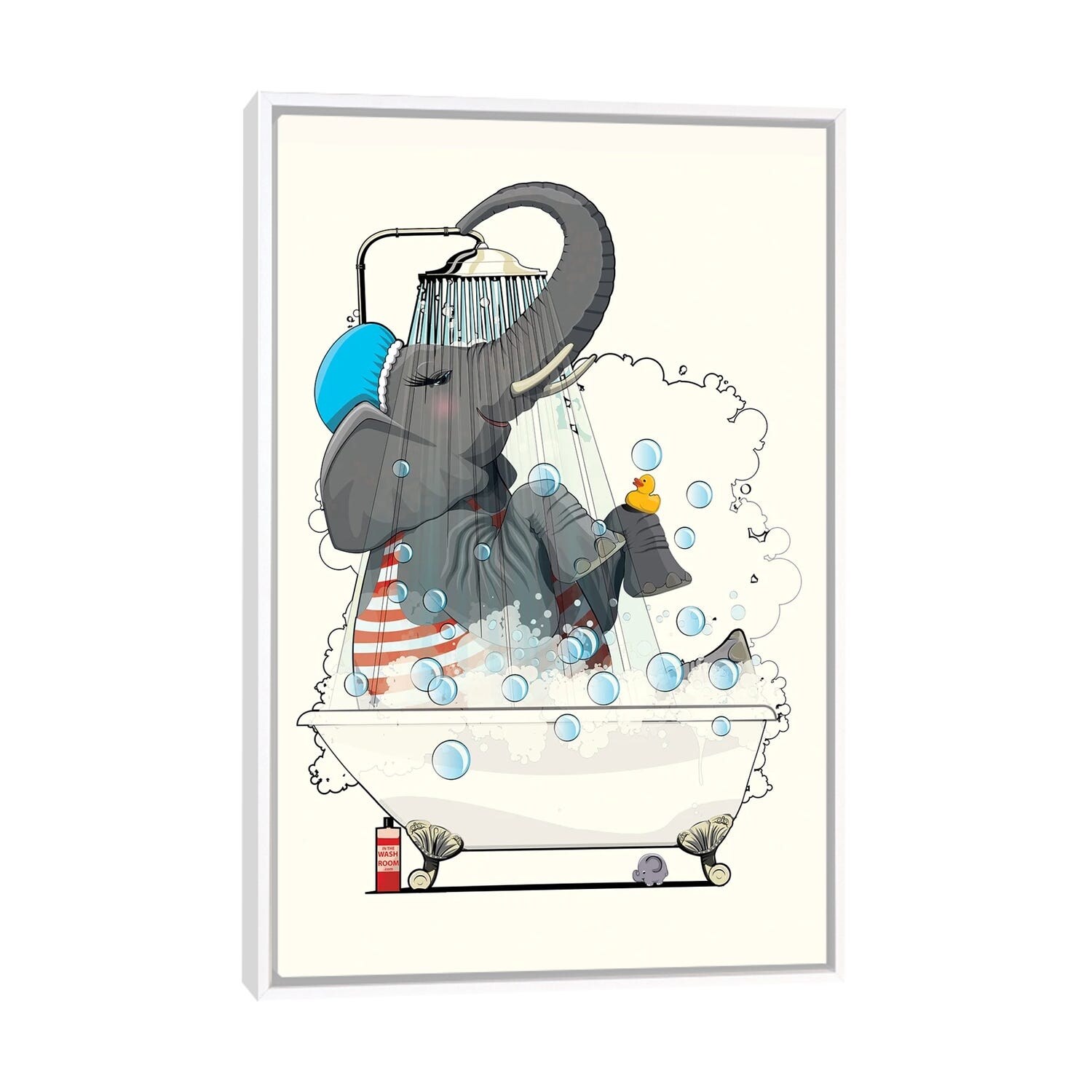 iCanvas "Elephant In Bathtub" by Jania Sharipzhanova Framed