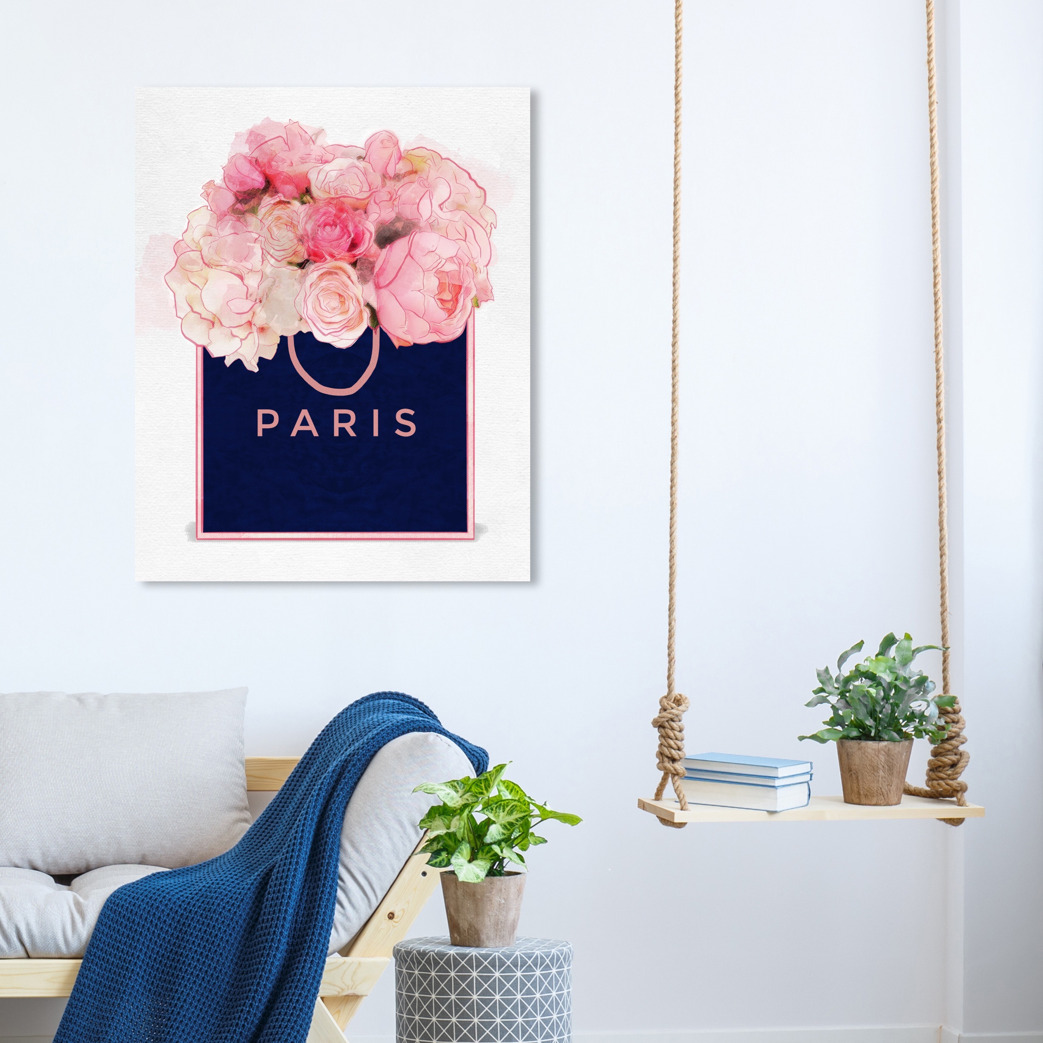 Oliver Gal 'Flower Bag Flocked' Floral and Botanical Wall Art Canvas Print Florals - Pink, Blue