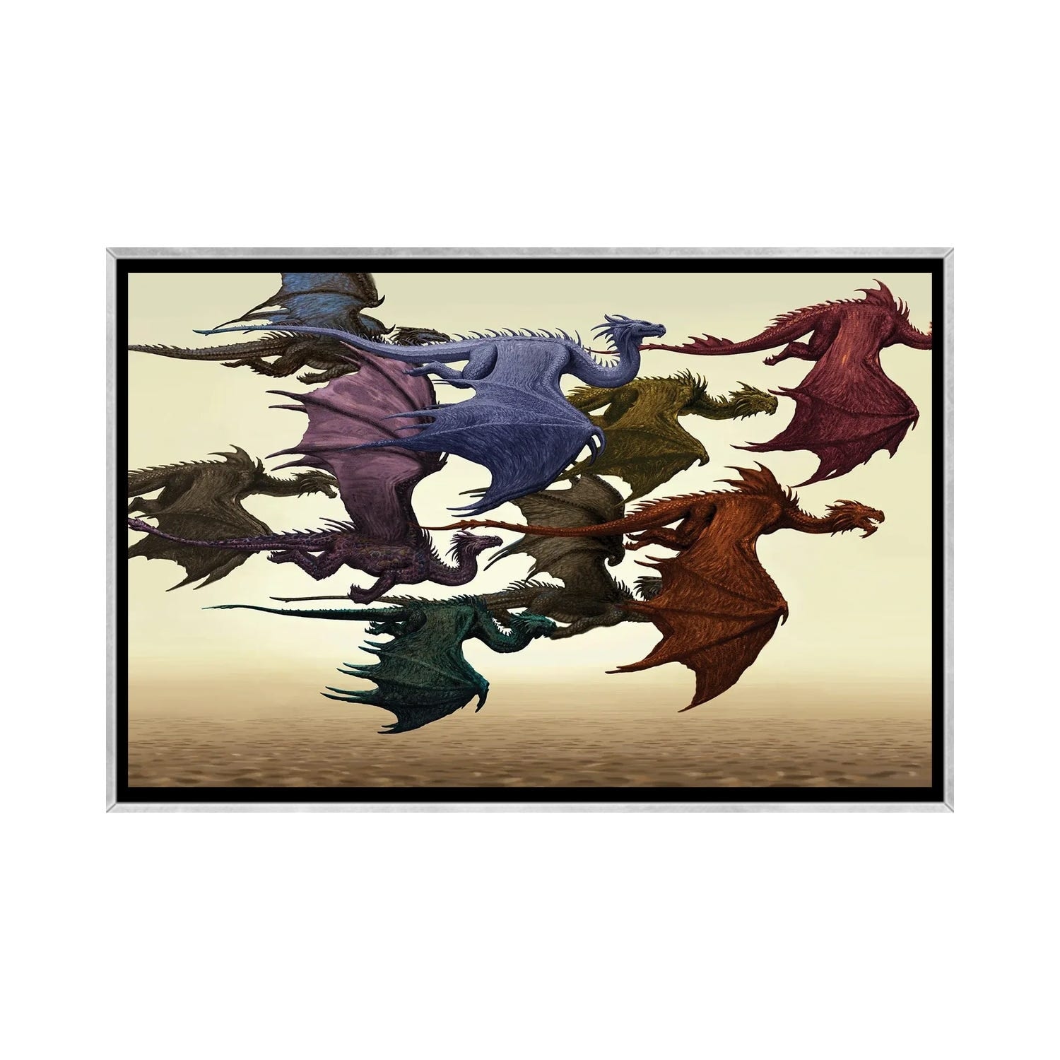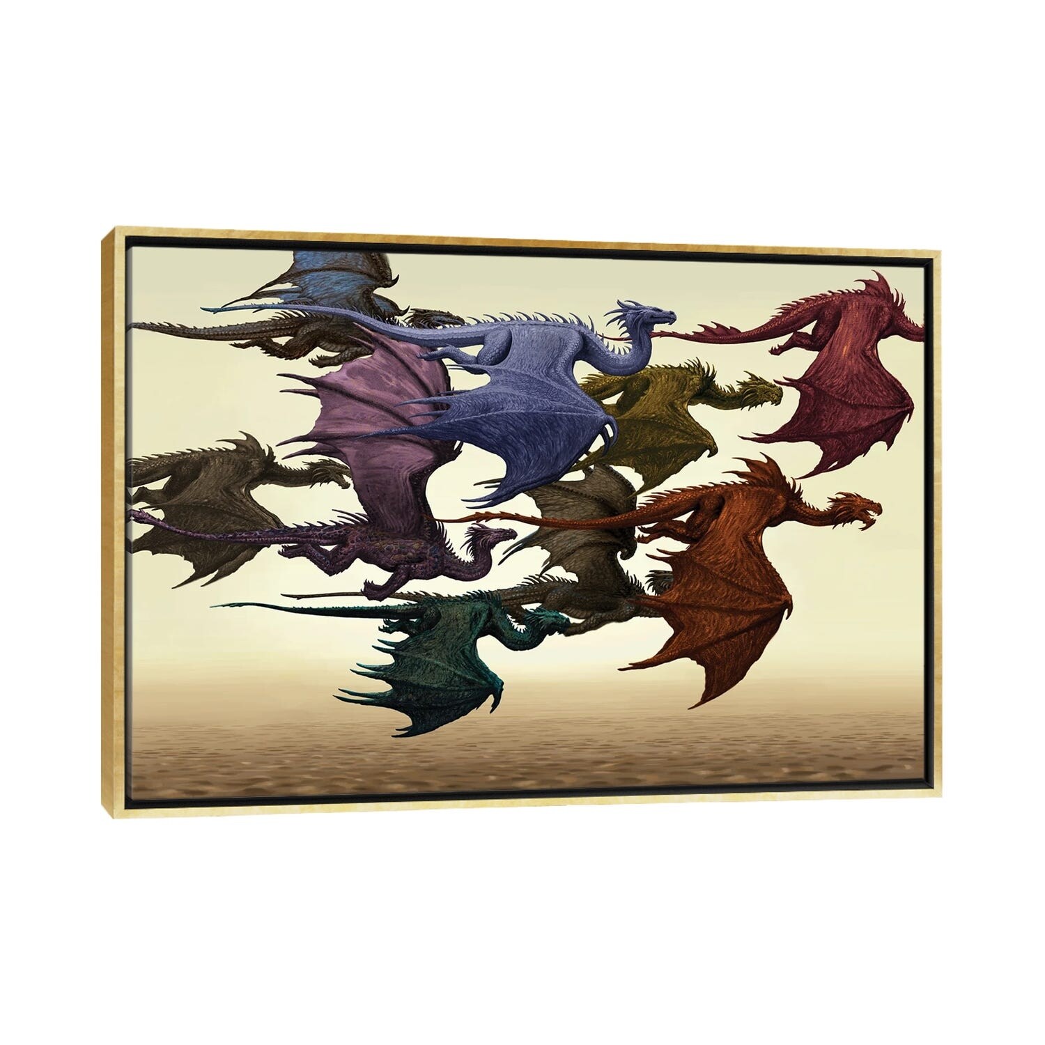 iCanvas "Flock Of Dragons" by Ciruelo Framed
