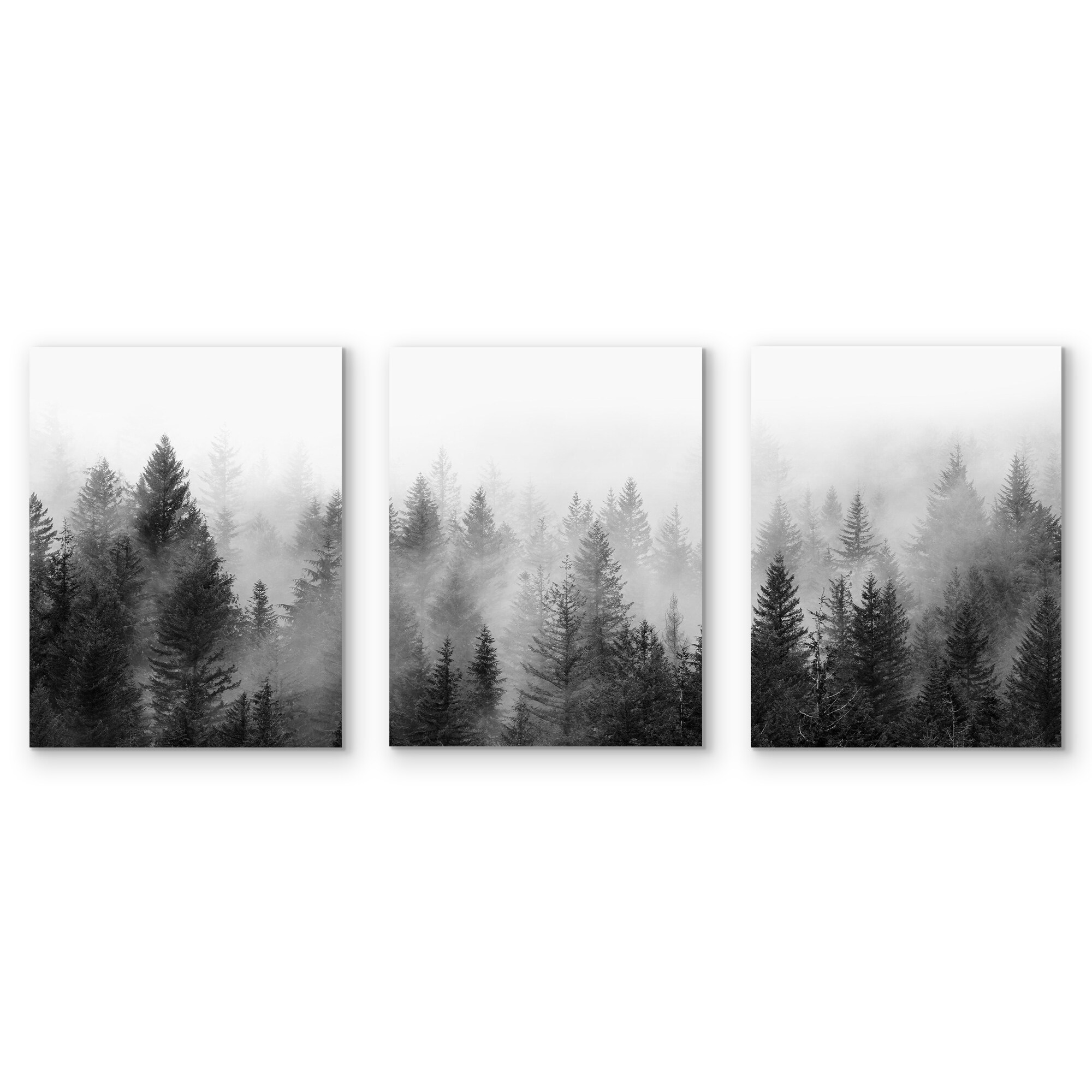 Americanflat 3 Piece 16x20 Wrapped Canvas Set - Foggy Forest Mist by Artvir