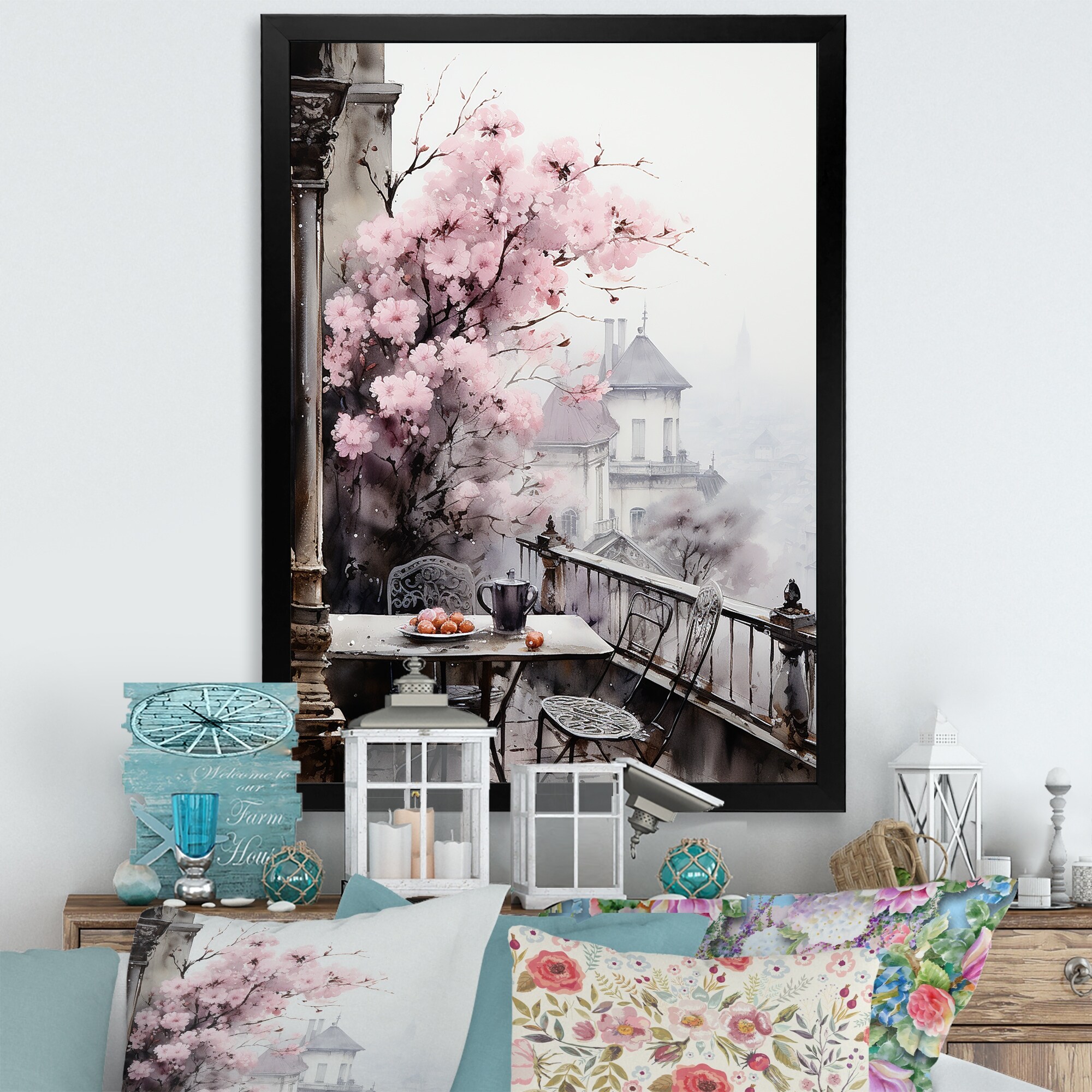 Designart "Pink Paris Montmartre Mist" City Paris Framed Canvas Wall Art