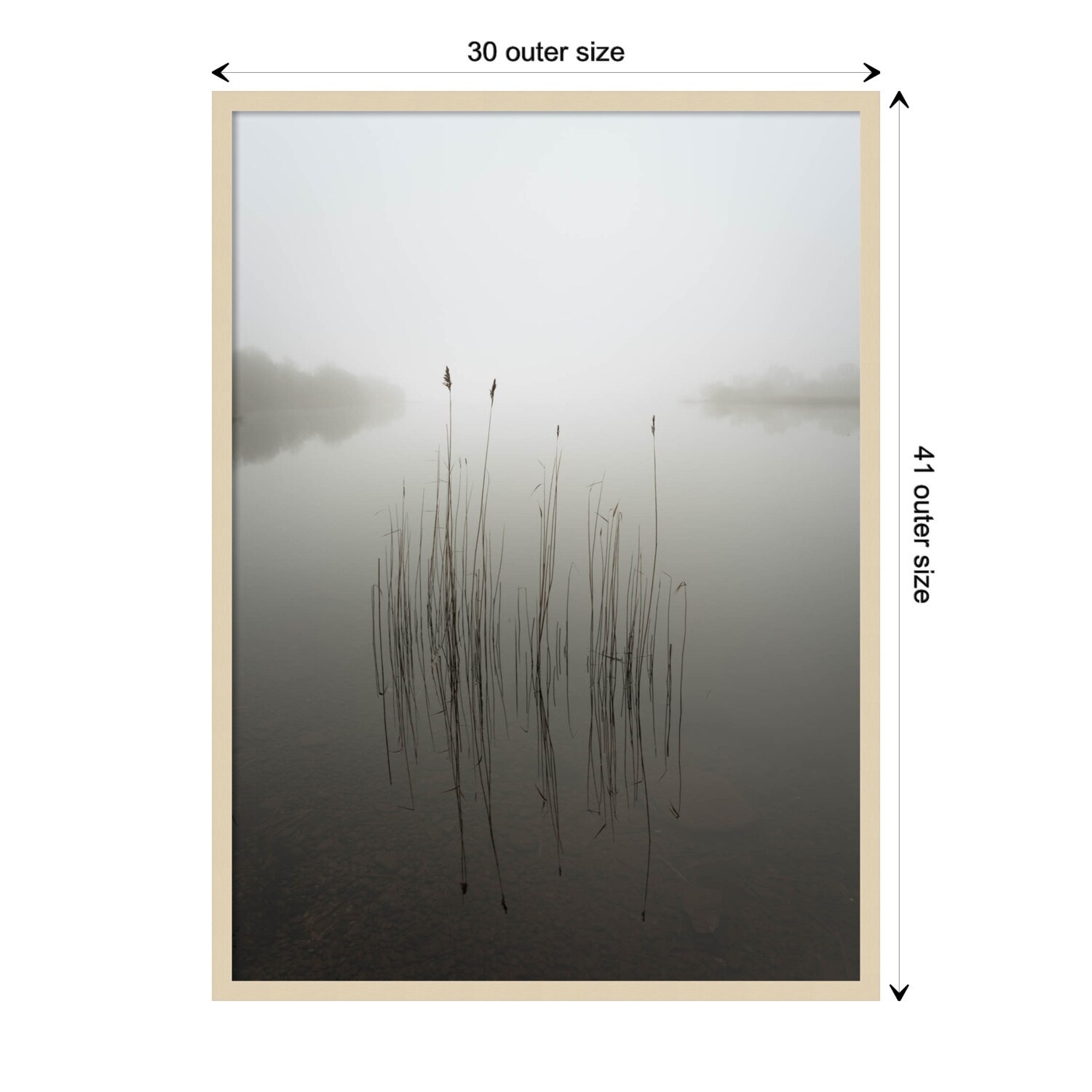 Reeds in the mist by David Ahern Wood Framed Wall Art Print