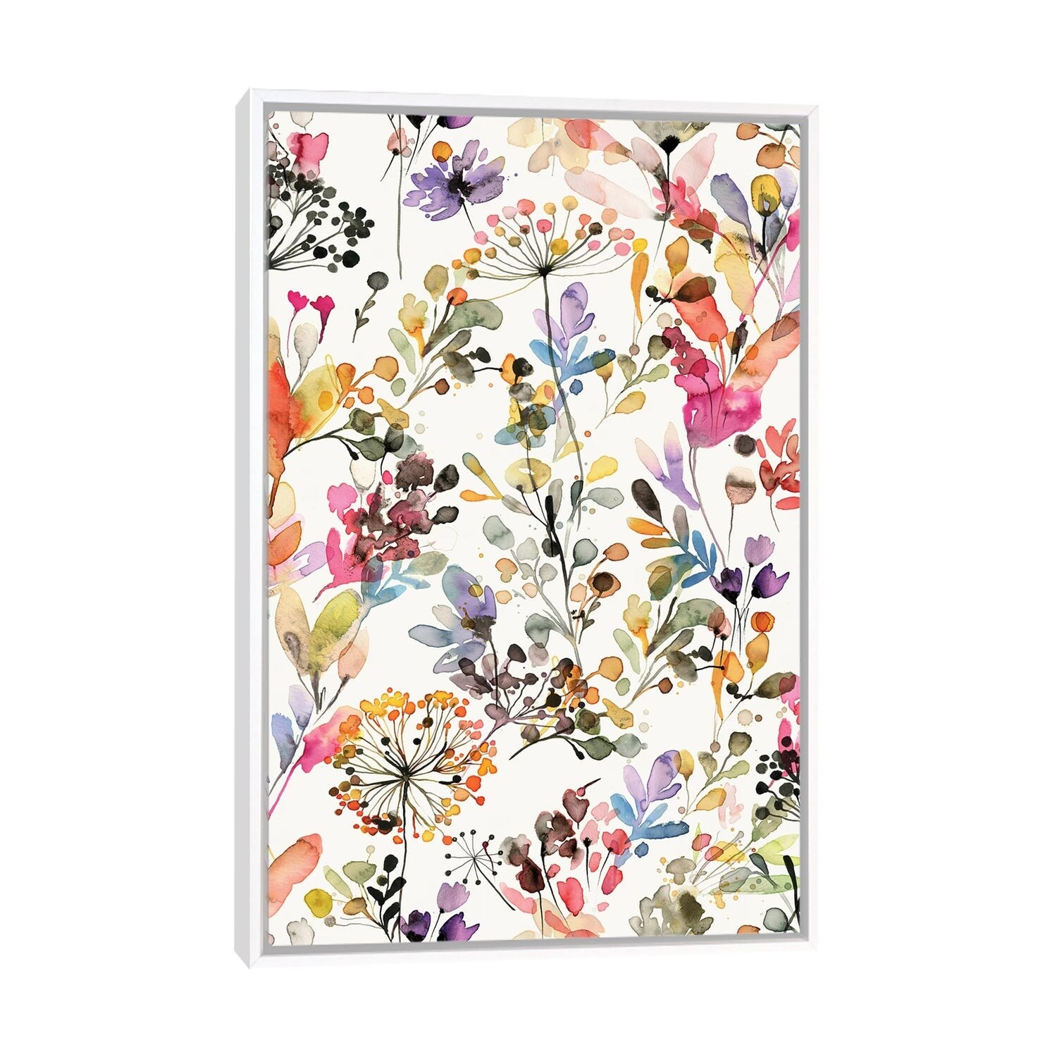 iCanvas "Wild Summer Rustic Flowers Neutral Cold" by Ninola Design Framed Canvas Print