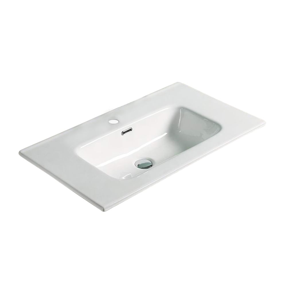 American Imaginations 24.16-in. W 1 Hole Ceramic Top Set in White Color - Overflow Drain Incl.