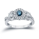 Auriya Unique 3-stone Blue Diamond Halo Engagement Ring 3/5ct TDW 14k Gold