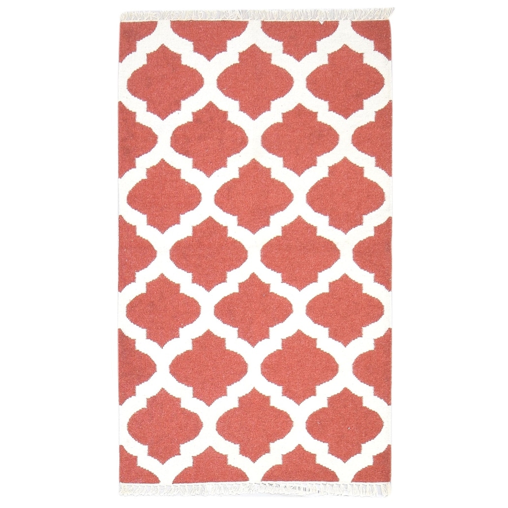 One of a Kind Flatweave Modern 3' x 5' Trellis Wool Pink Rug - 3' x 5'