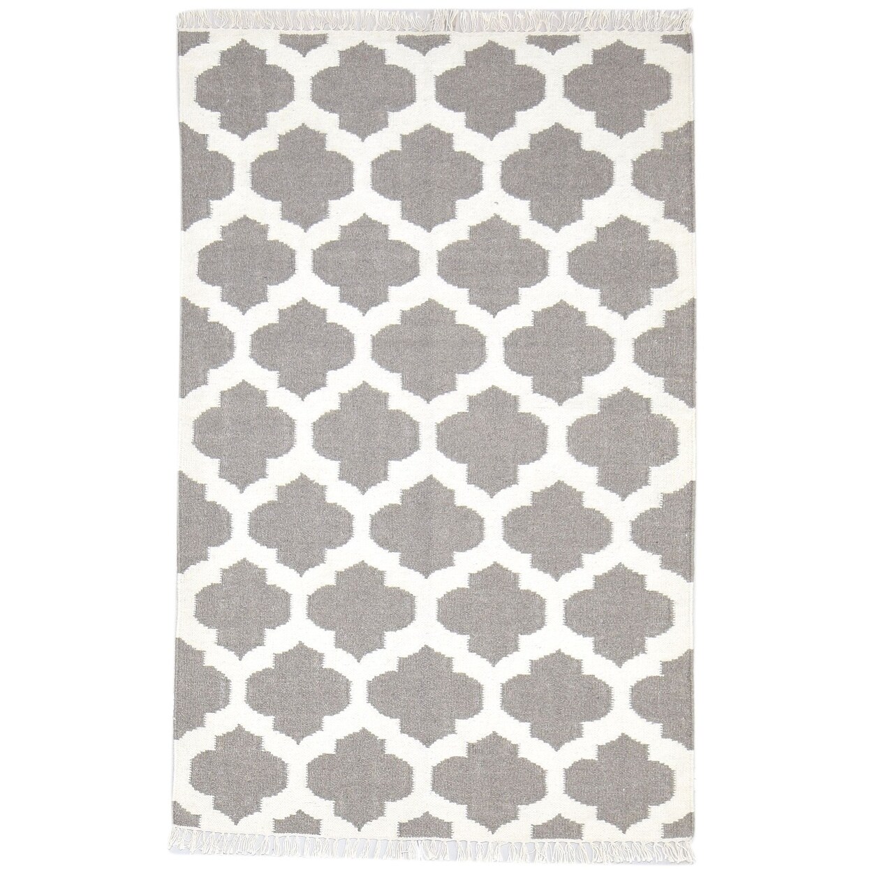 One of a Kind Flatweave Modern 3' x 5' Trellis Wool Grey Rug - 3' x 5'