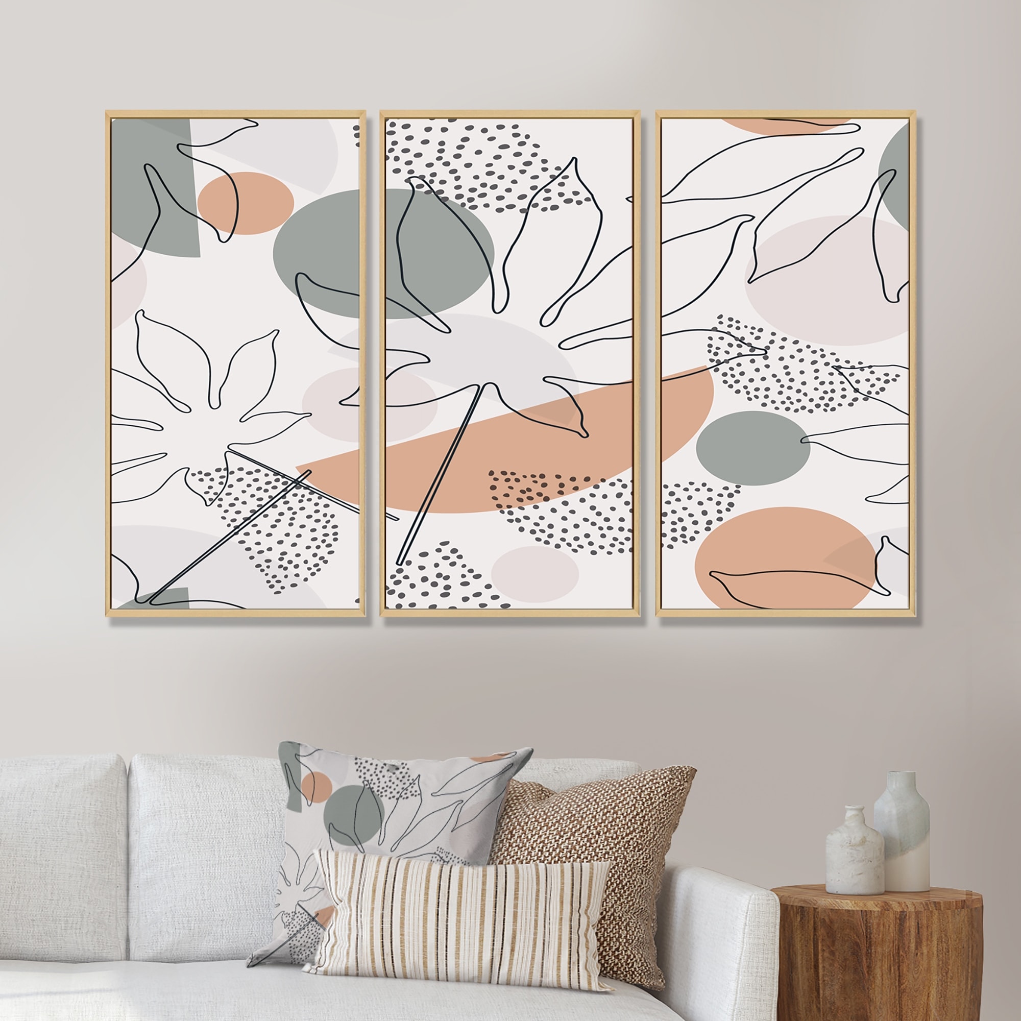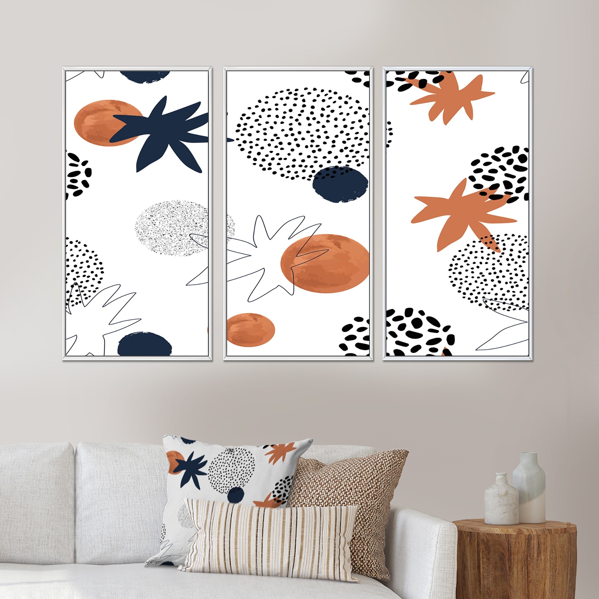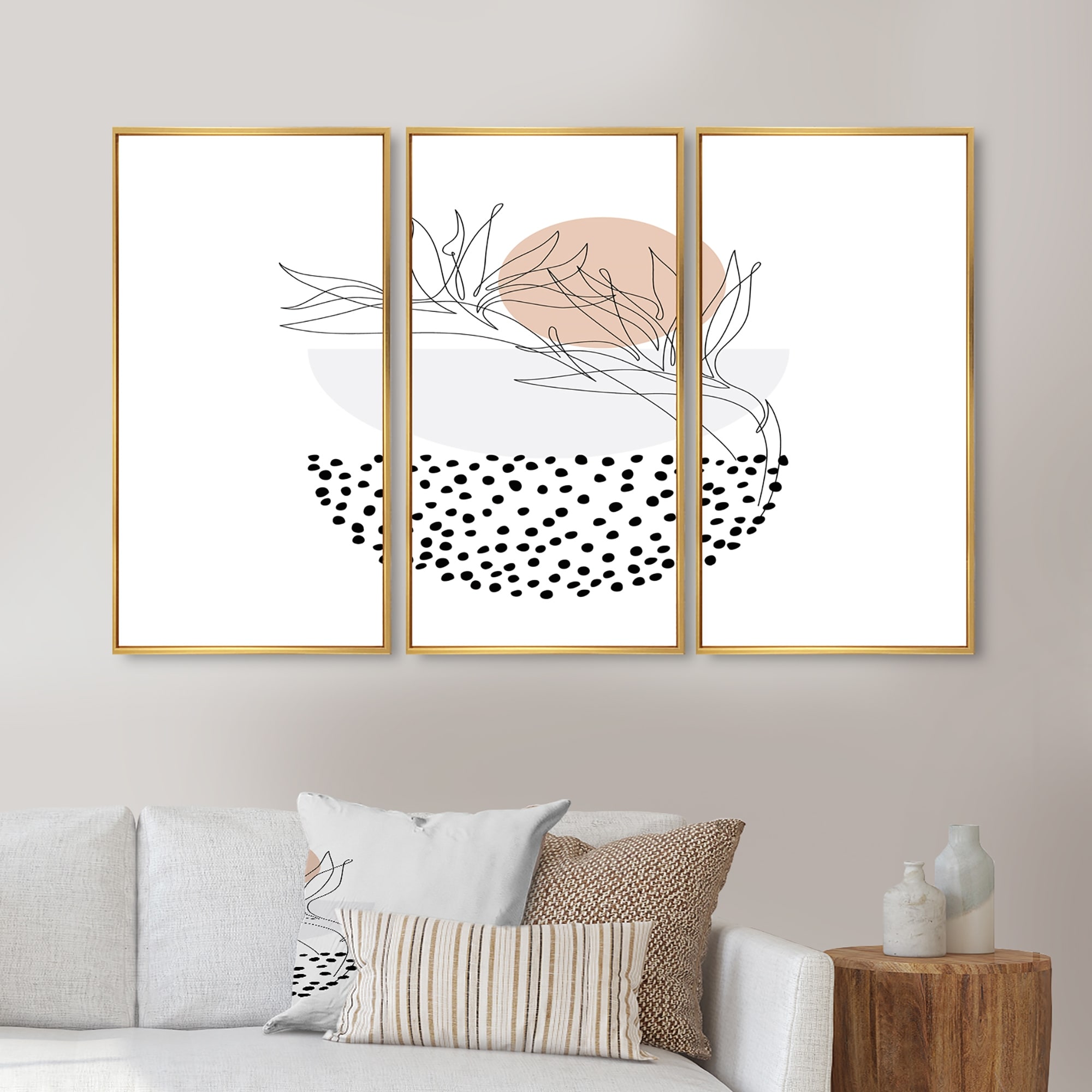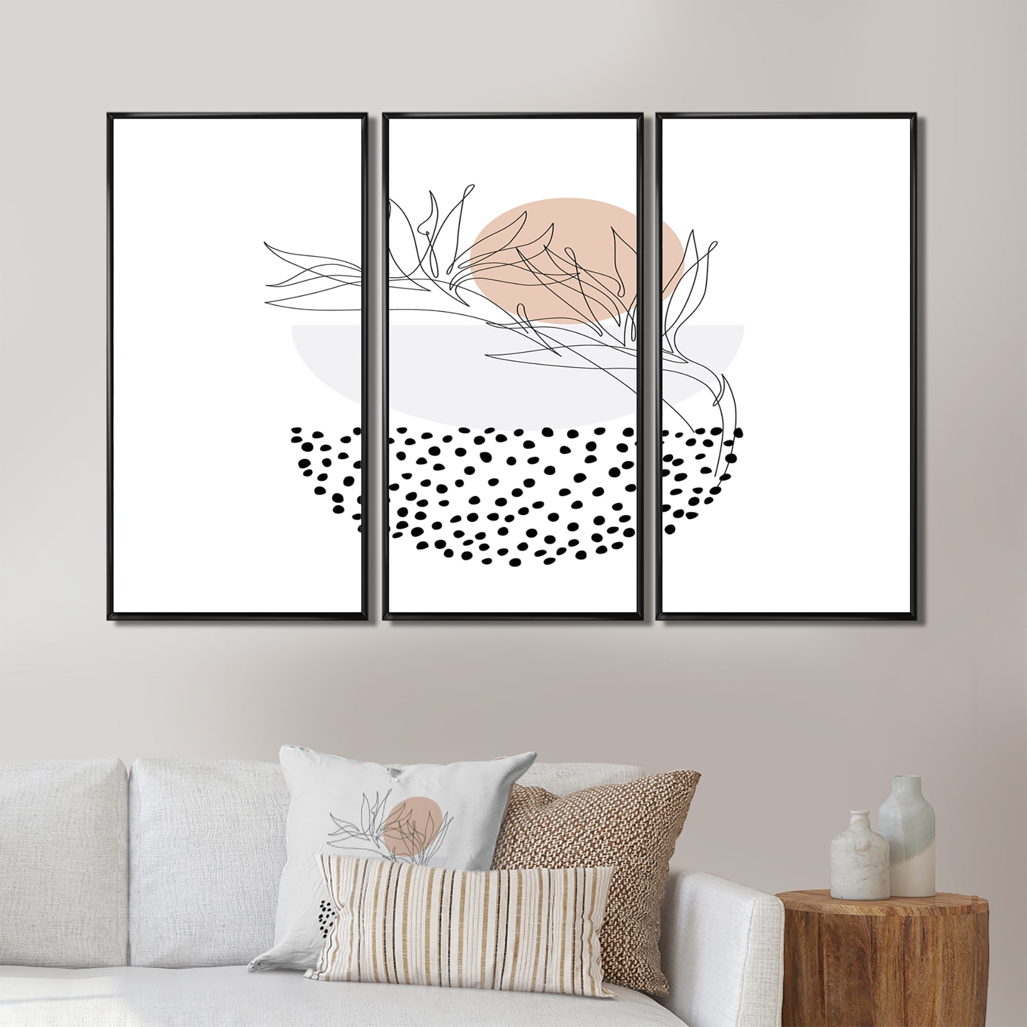 Designart "One Line Silhouettes With Polka Circles" Patterned Framed Art Prints Set of 3 - 4 Colors of Frames