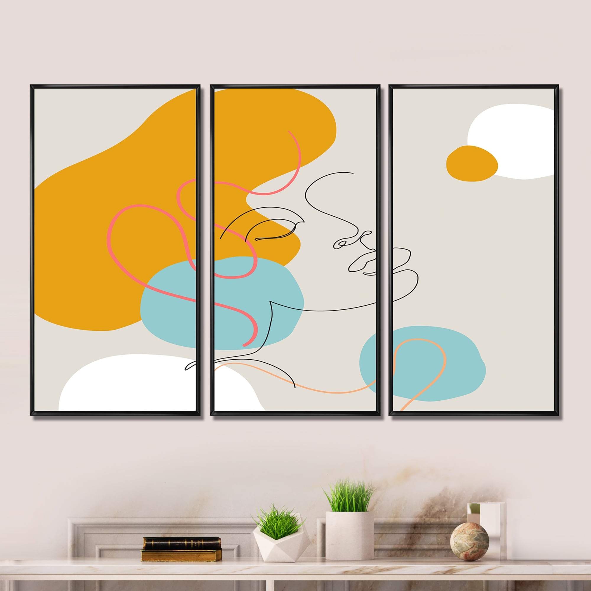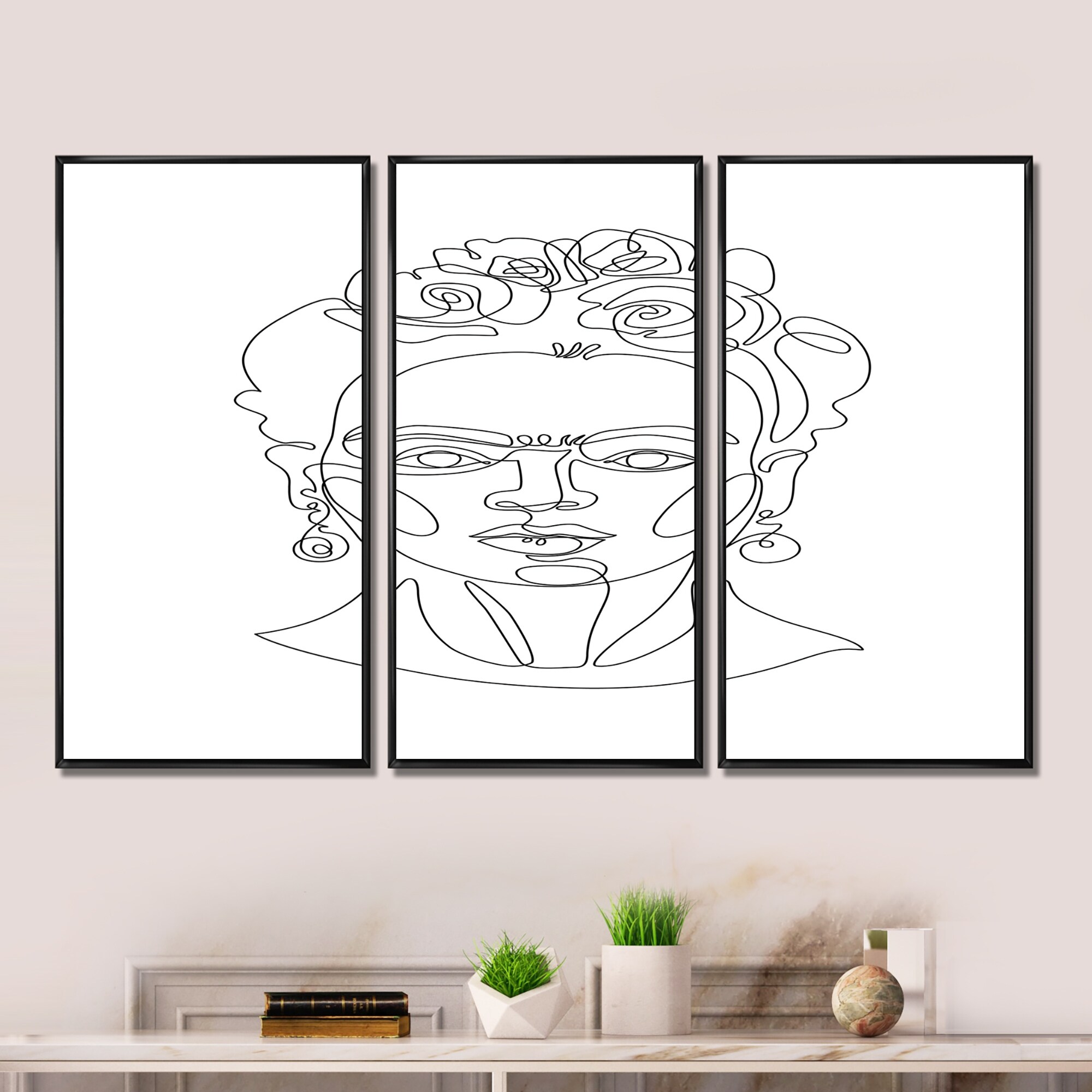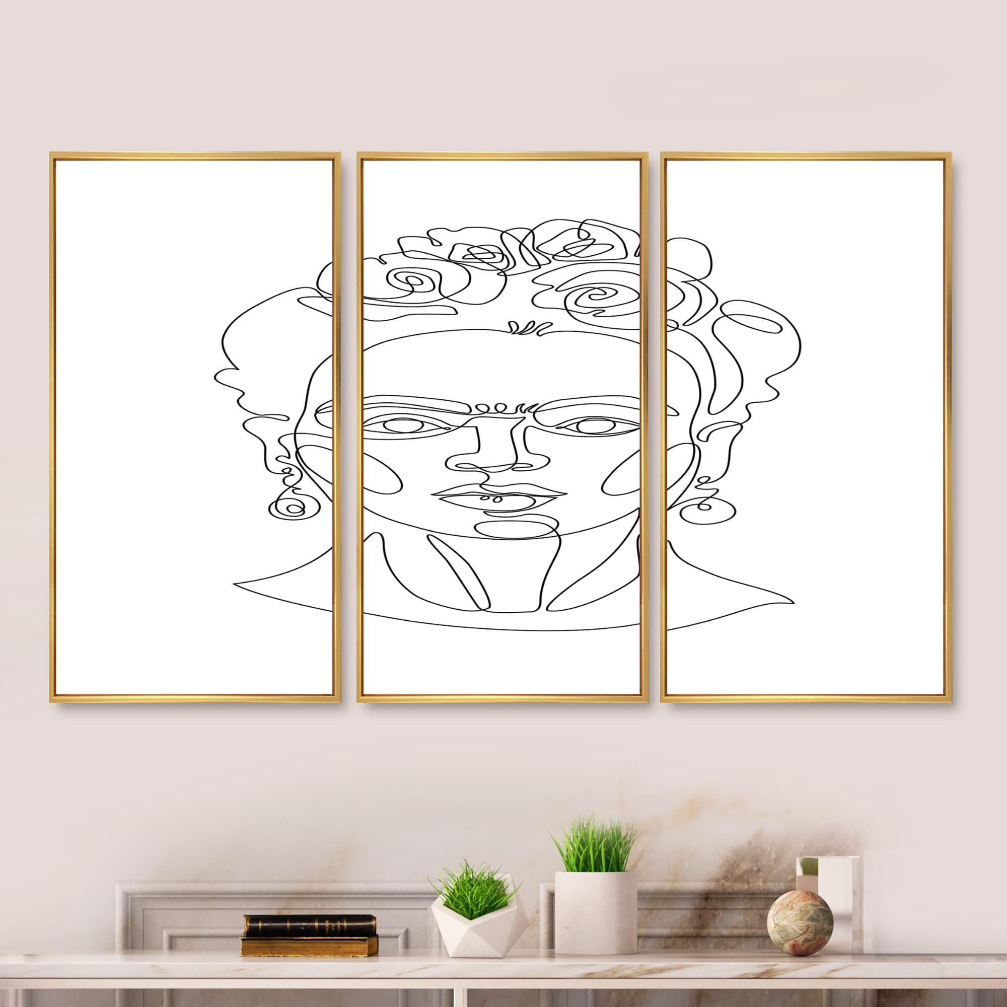 Designart "Minimal One Line Portrait of Female Face II" Modern Framed Wall Decor Set of 3 - 4 Colors of Frames