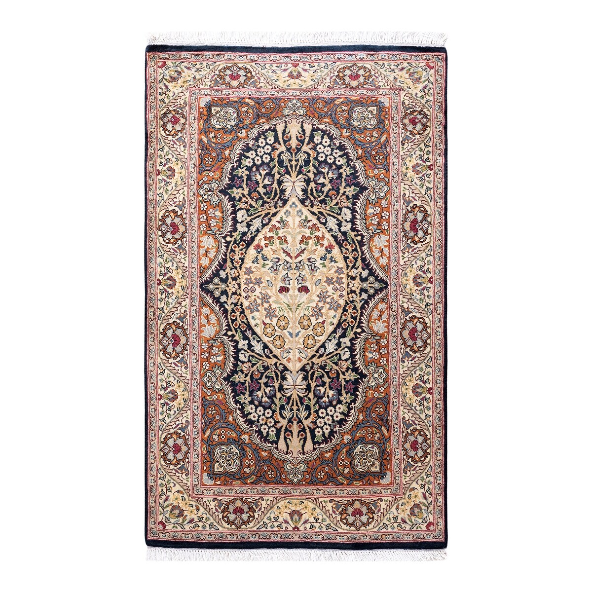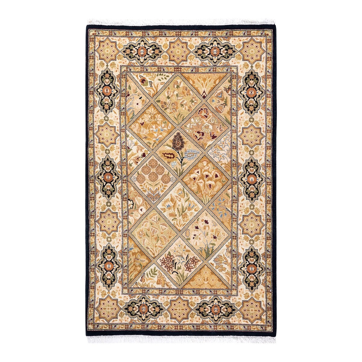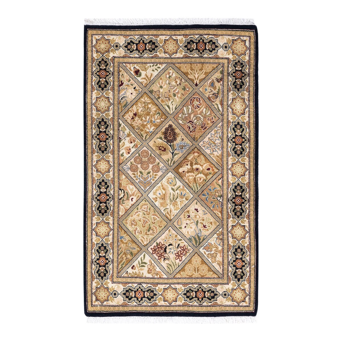 One of a Kind Hand Knotted Traditional Oriental Traditional Area Rug - 3' 7" X 2' 2"