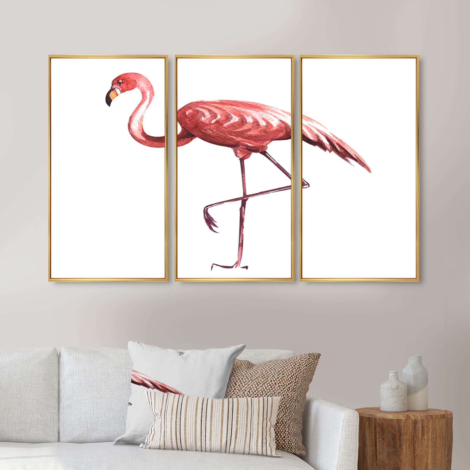 Designart "Pink Flamingo on One Leg" Traditional Framed Art Set of 3 - 4 Colors of Frames