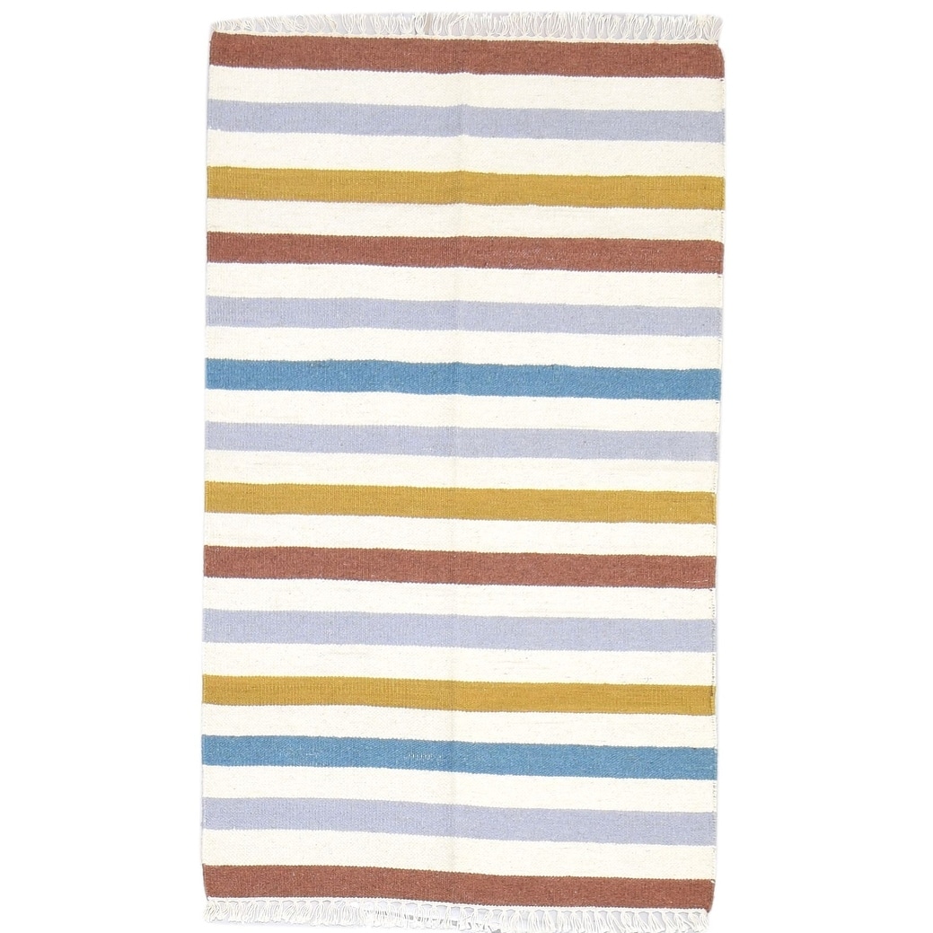 One of a Kind Flatweave Modern 3' x 5' Stripe Wool Multi Rug - 3' x 5'