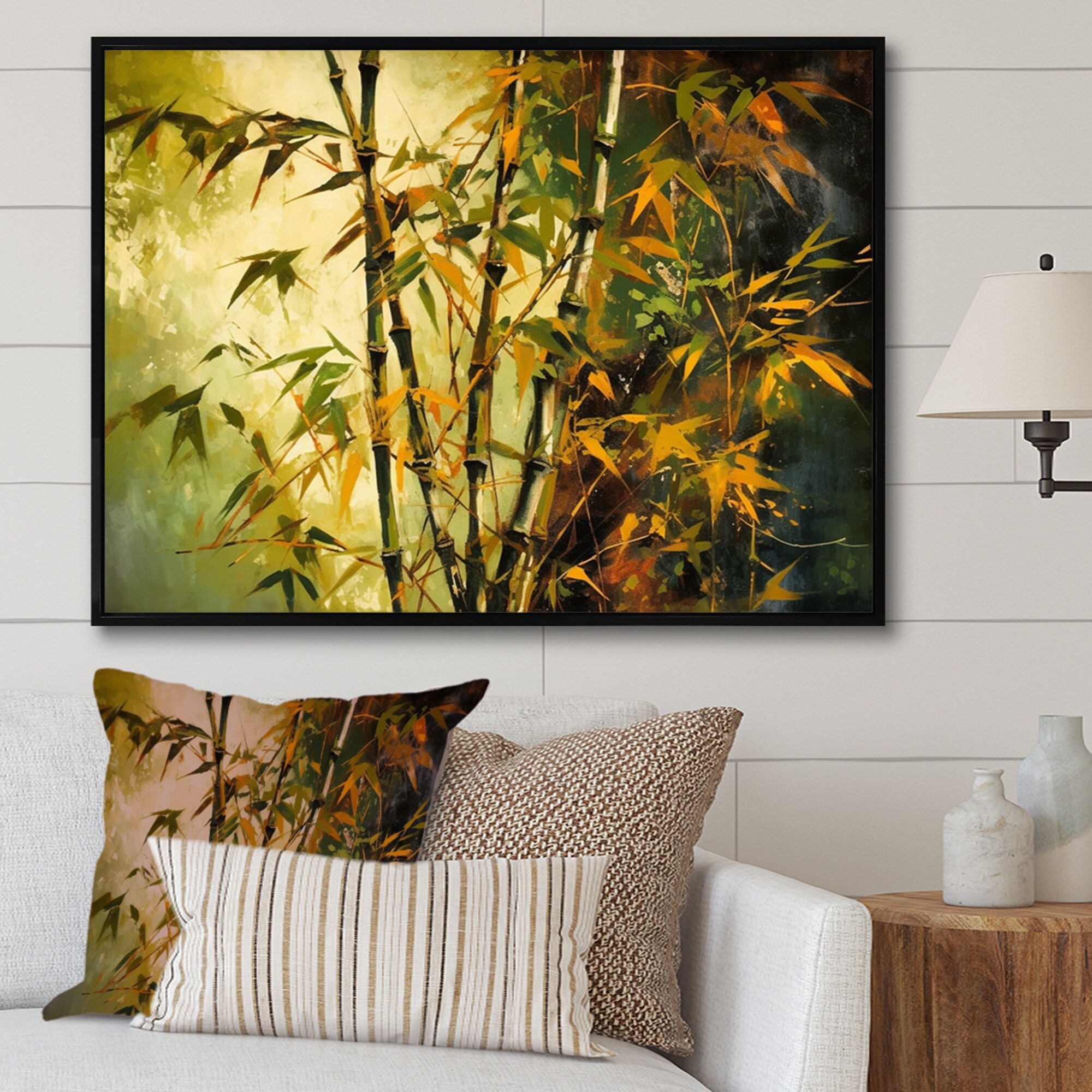 Designart "Yellow Floral Bamboo Oasis" Floral Framed Canvas Wall Art