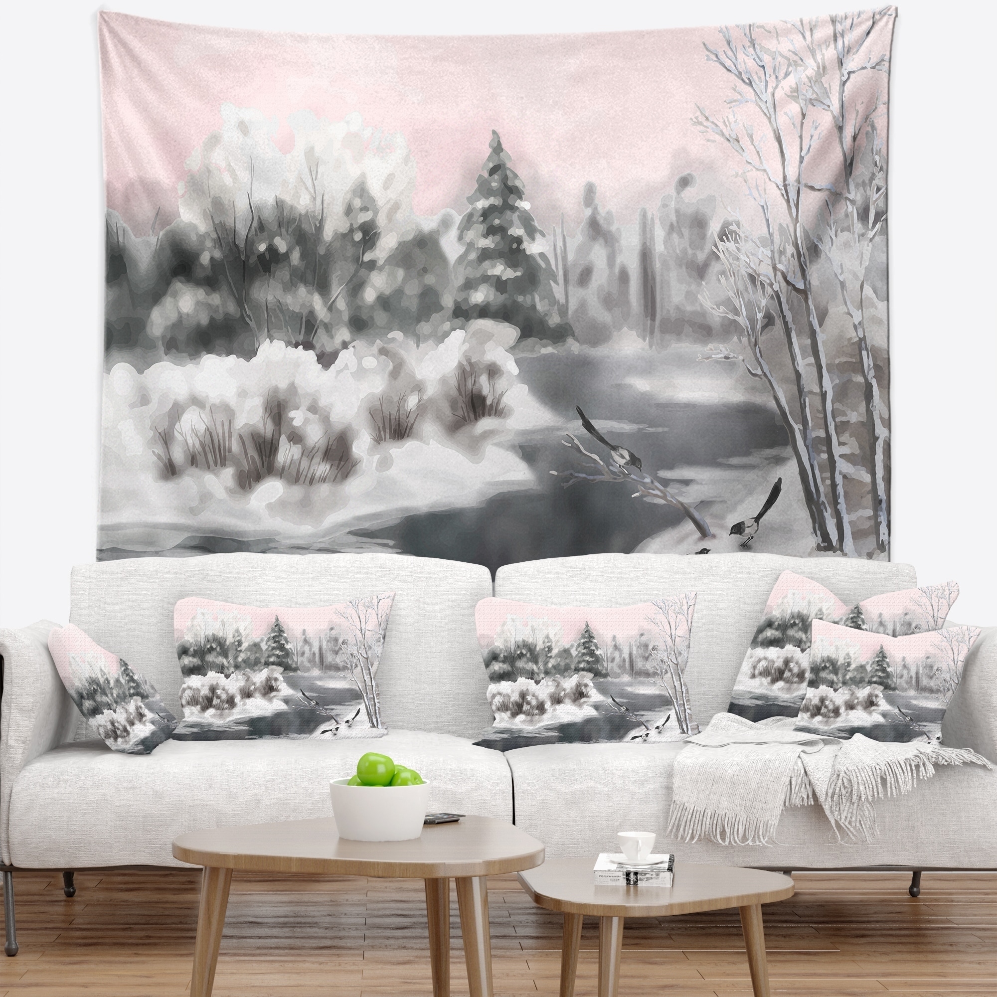 Designart 'Grey Winter Vector' Landscape Watercolor Wall Tapestry