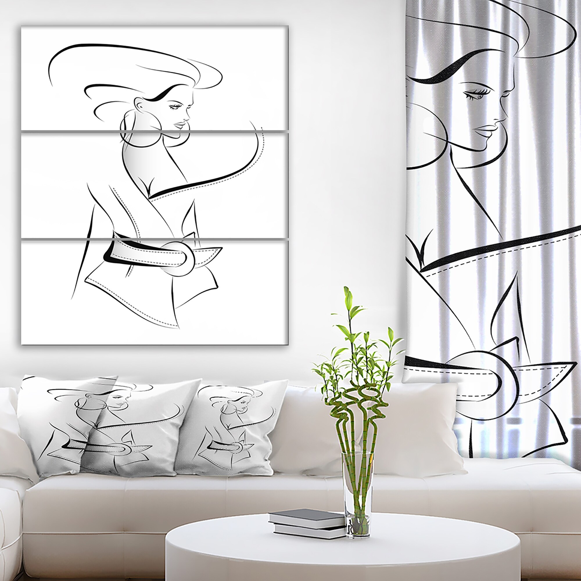 Designart "Fashion Woman in Vector Sketch" Glamour Print on Wrapped Canvas set - 28x36 - 3 Panels