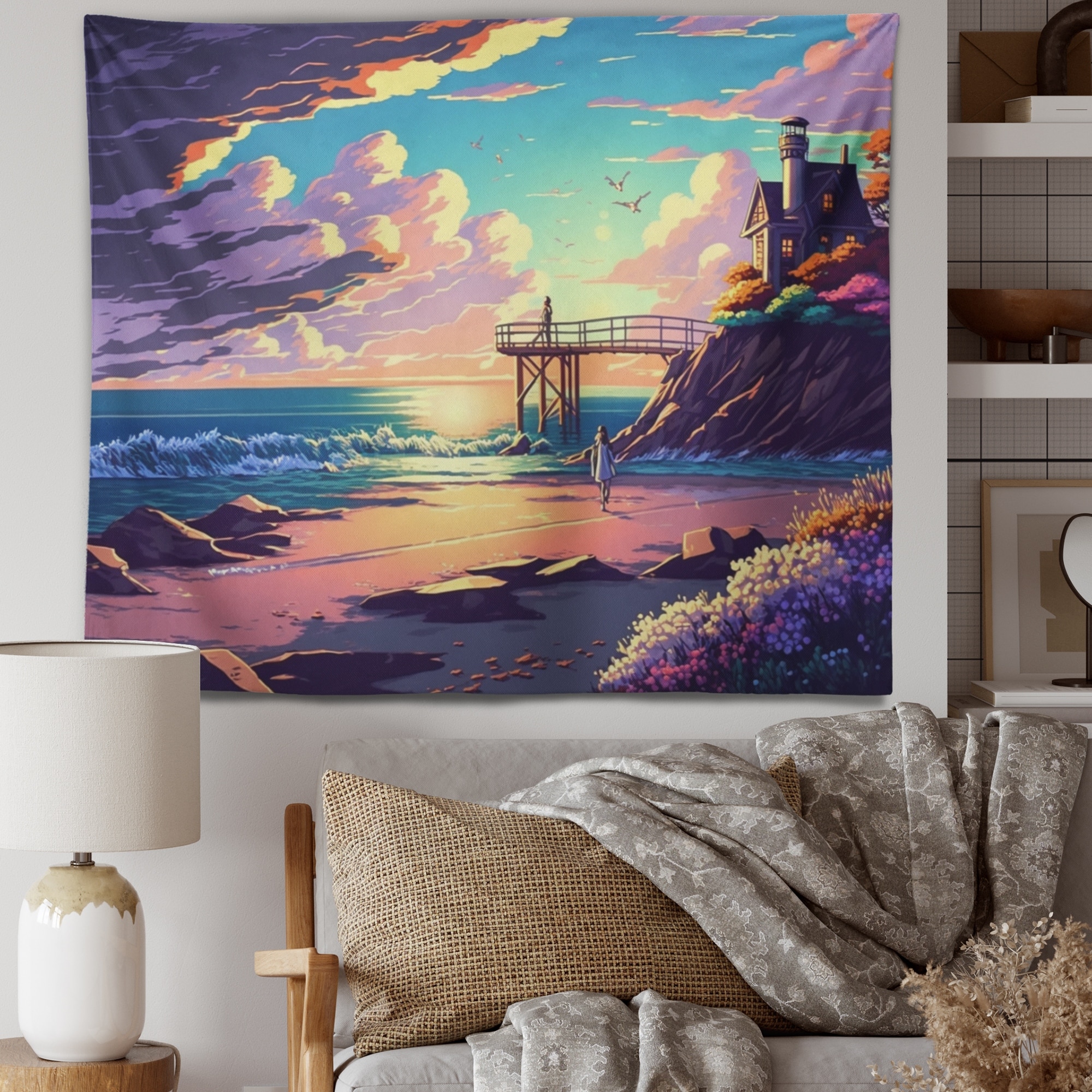 Designart 'Modern Sunset in Vector Style III' Modern Landscape Beach Wall Tapestry