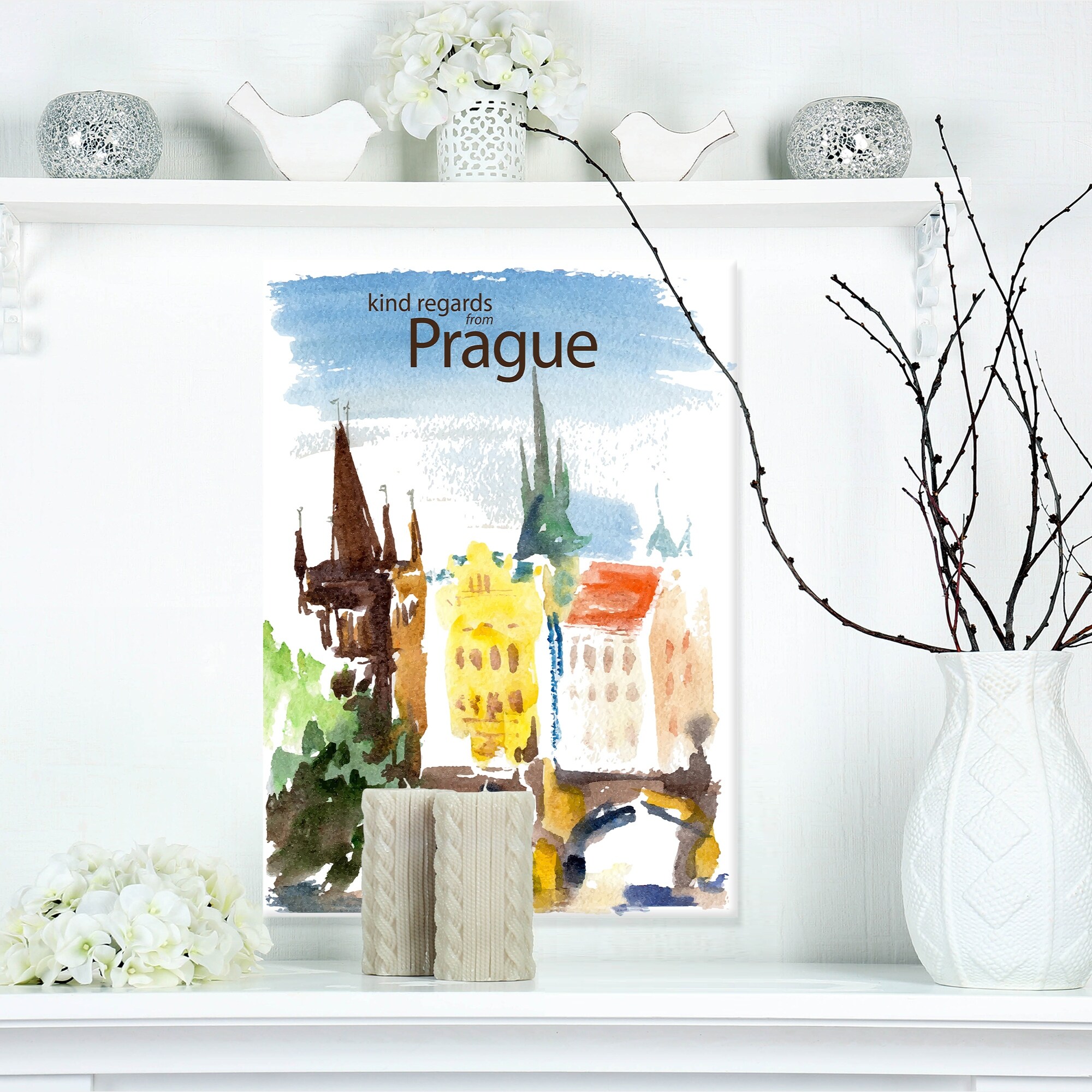 Designart "Old Prague Vector" Cityscape Painting Canvas Print