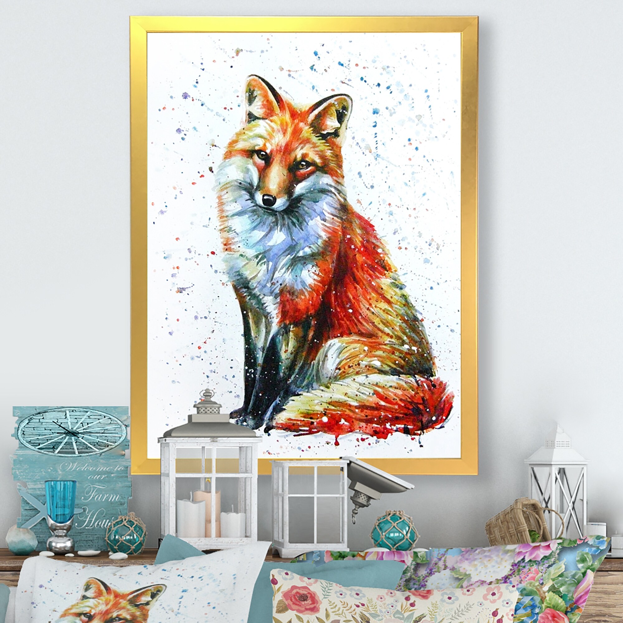 Designart "Fox Painting Wildlife Animals" Traditional Framed Art Print