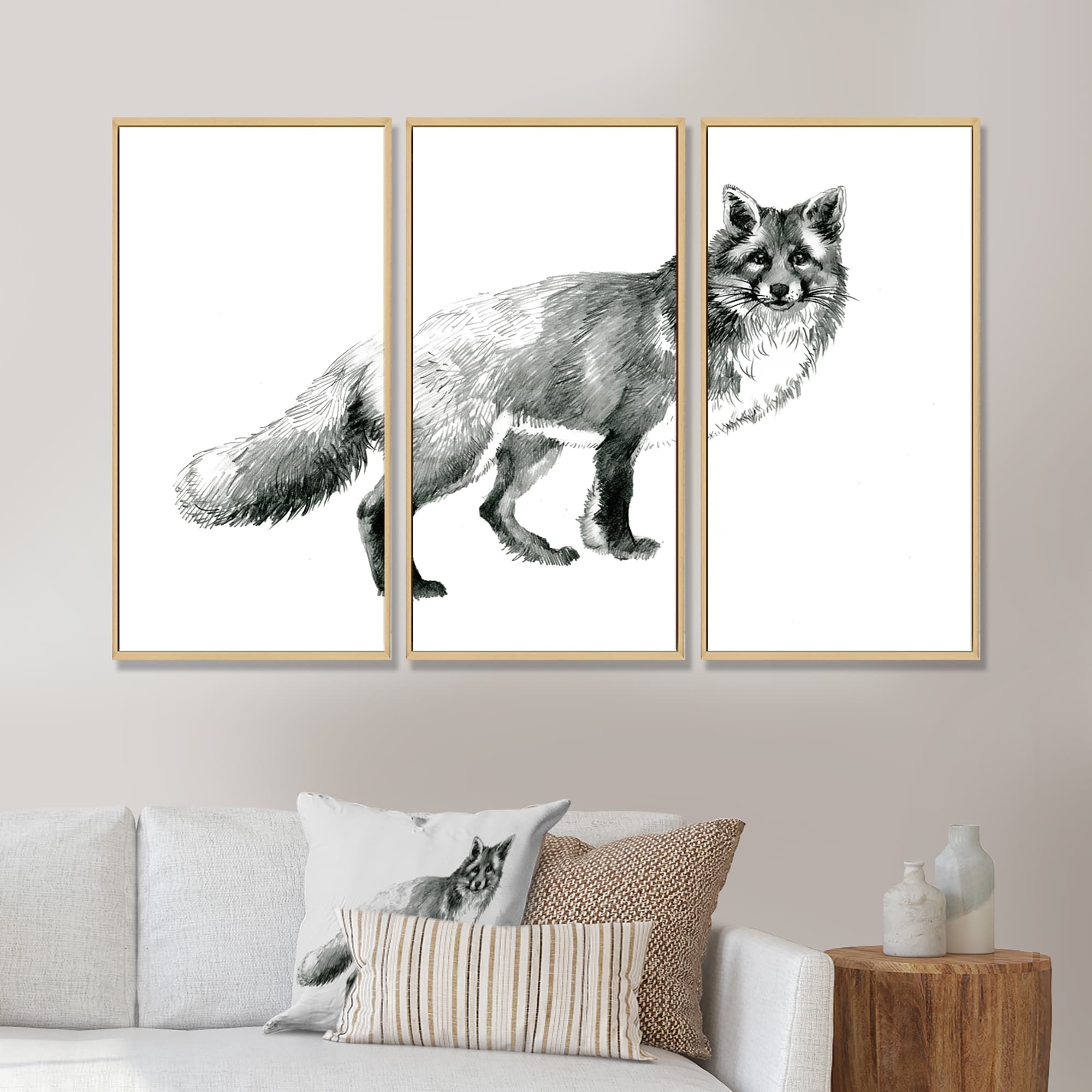 Designart "Monochrome Portrait Fox" Farmhouse Framed Canvas Wall Art Set of 3 - 4 Colors of Frames
