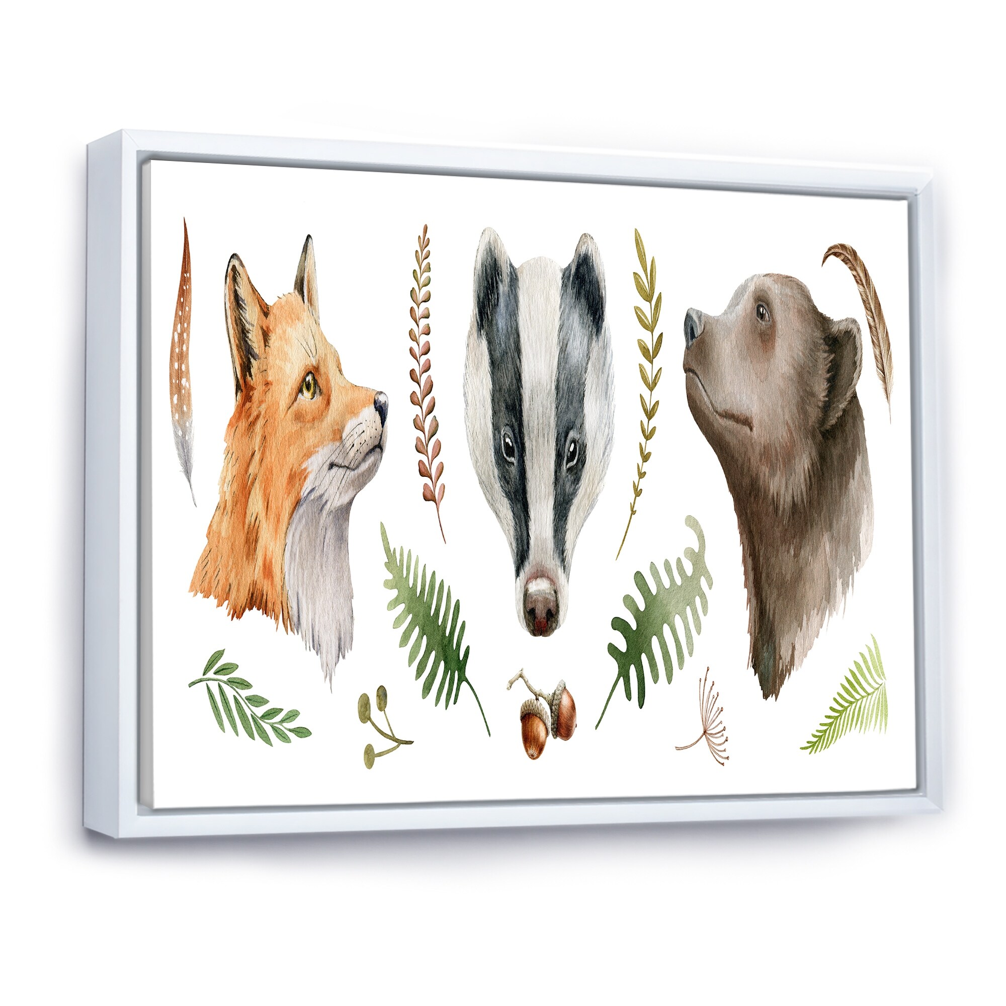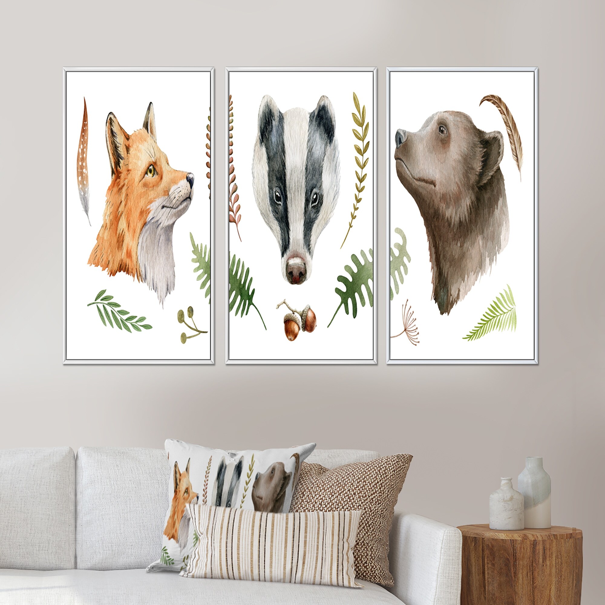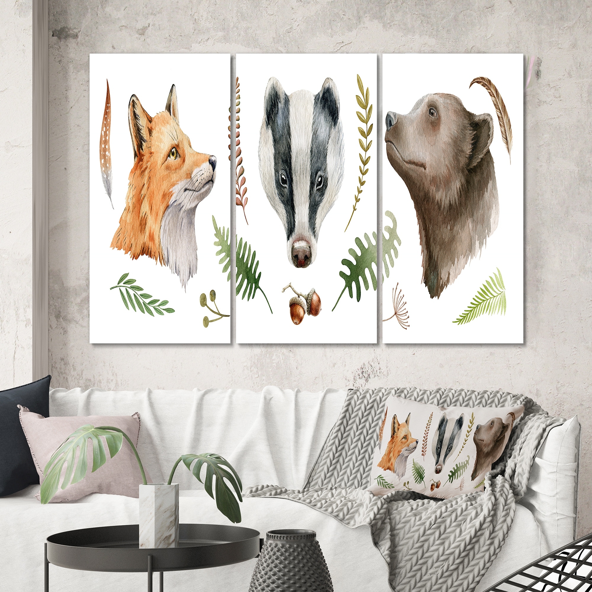 Designart "Fox Bear And Badger" Traditional Canvas Wall Art Print