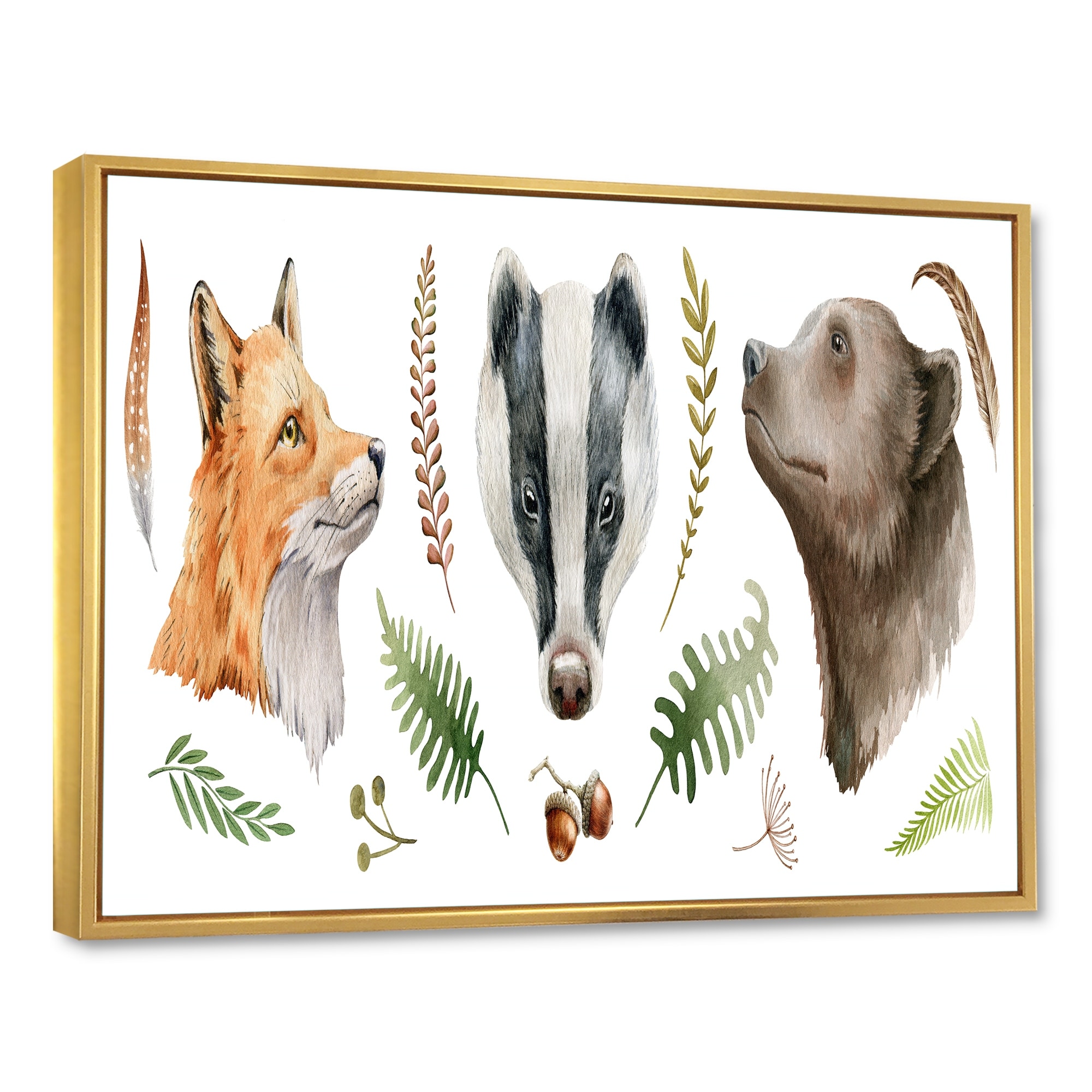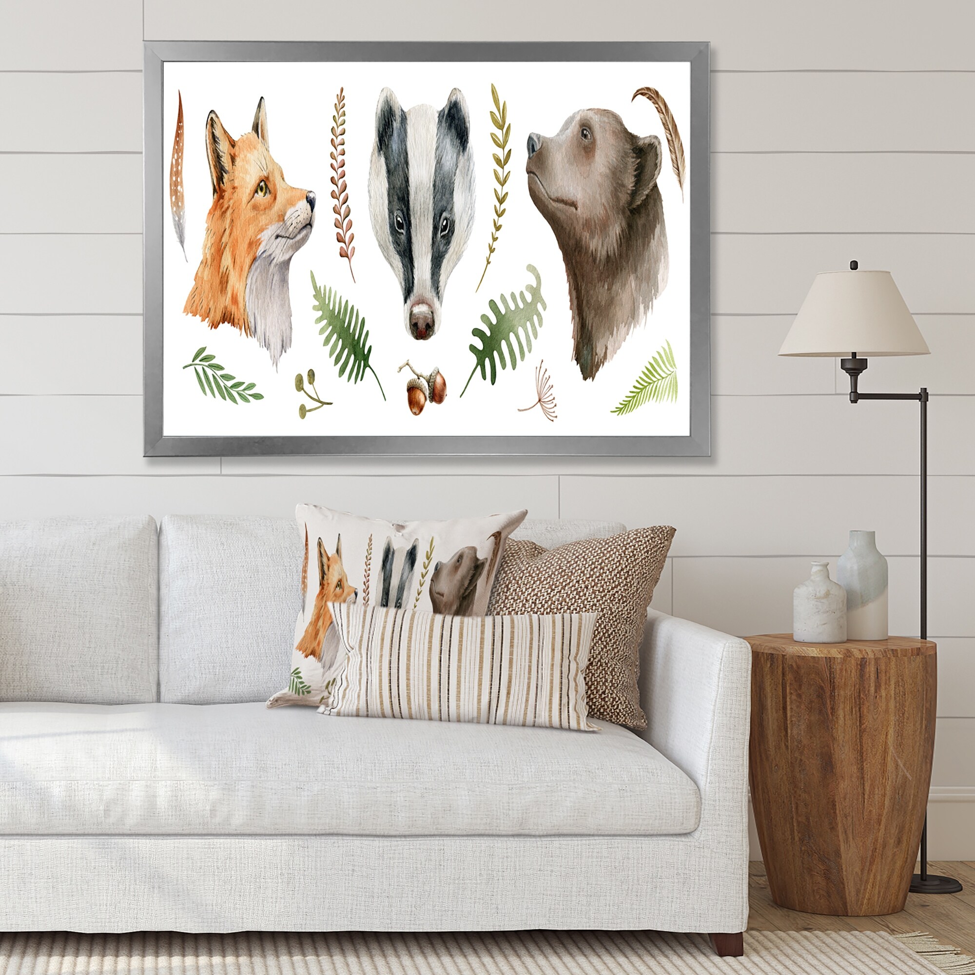 Designart "Fox Bear And Badger" Traditional Framed Canvas Wall Art Print