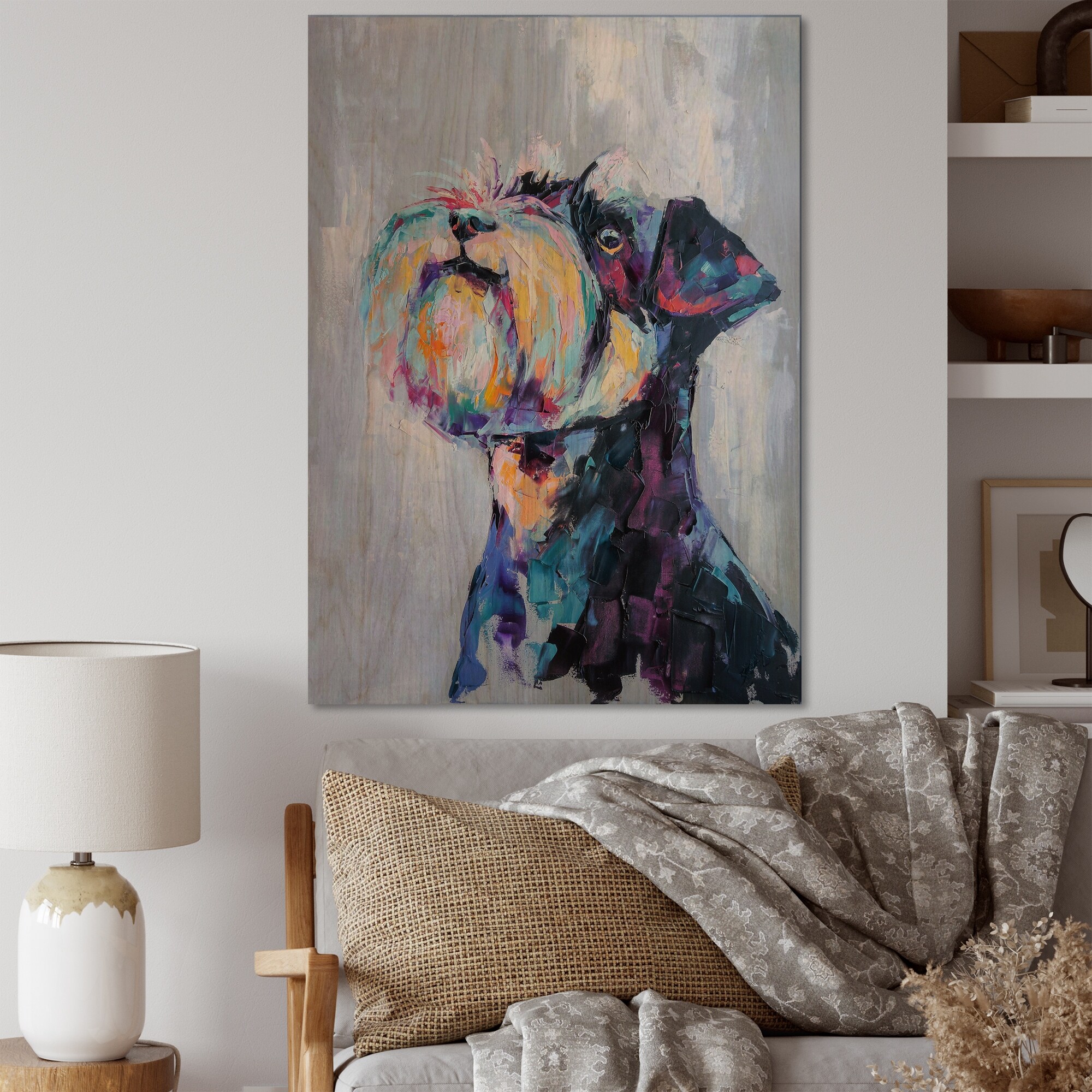 Designart 'Pastel Paint Fox Terrier Portrait' Traditional Wood Wall Art Panels - Natural Pine Wood