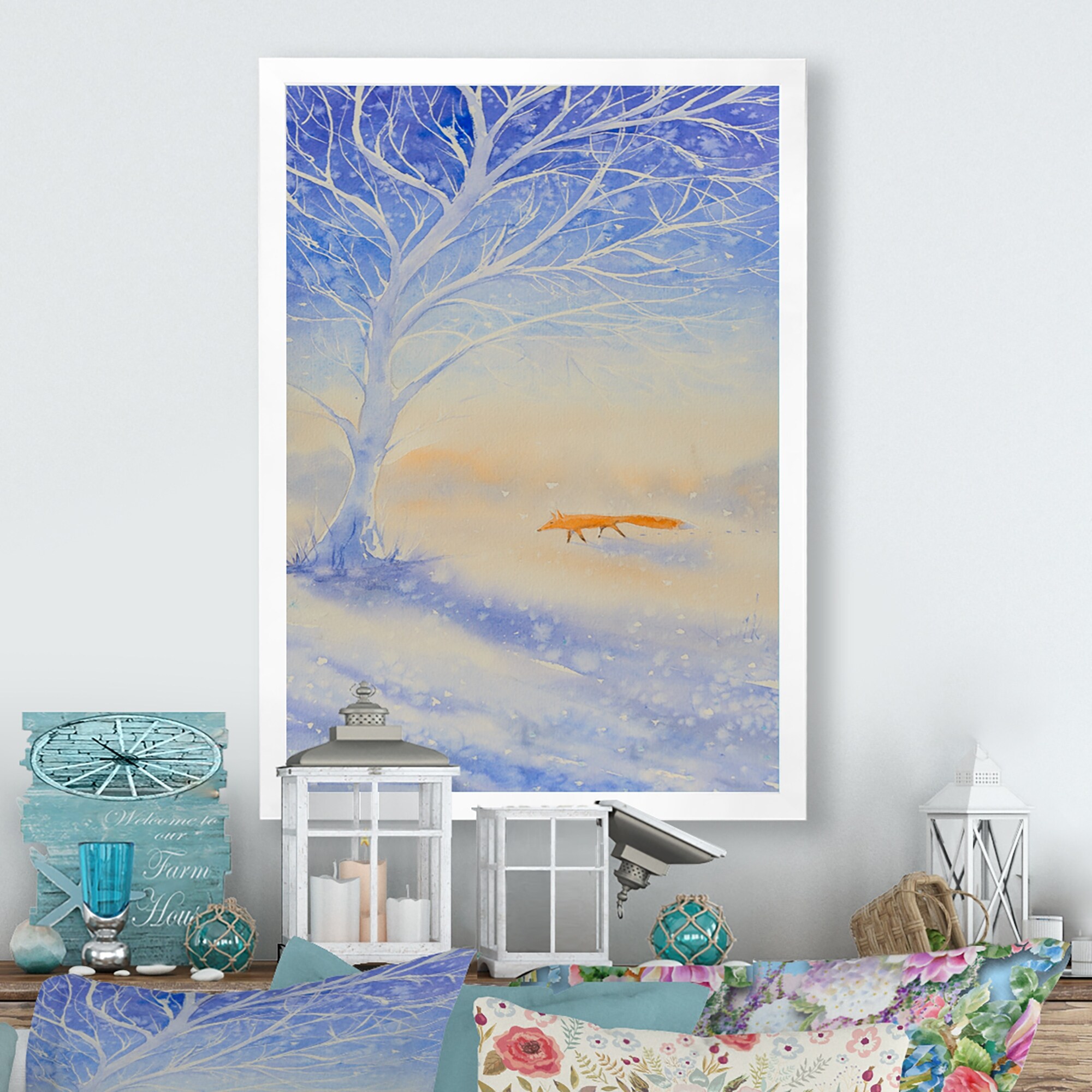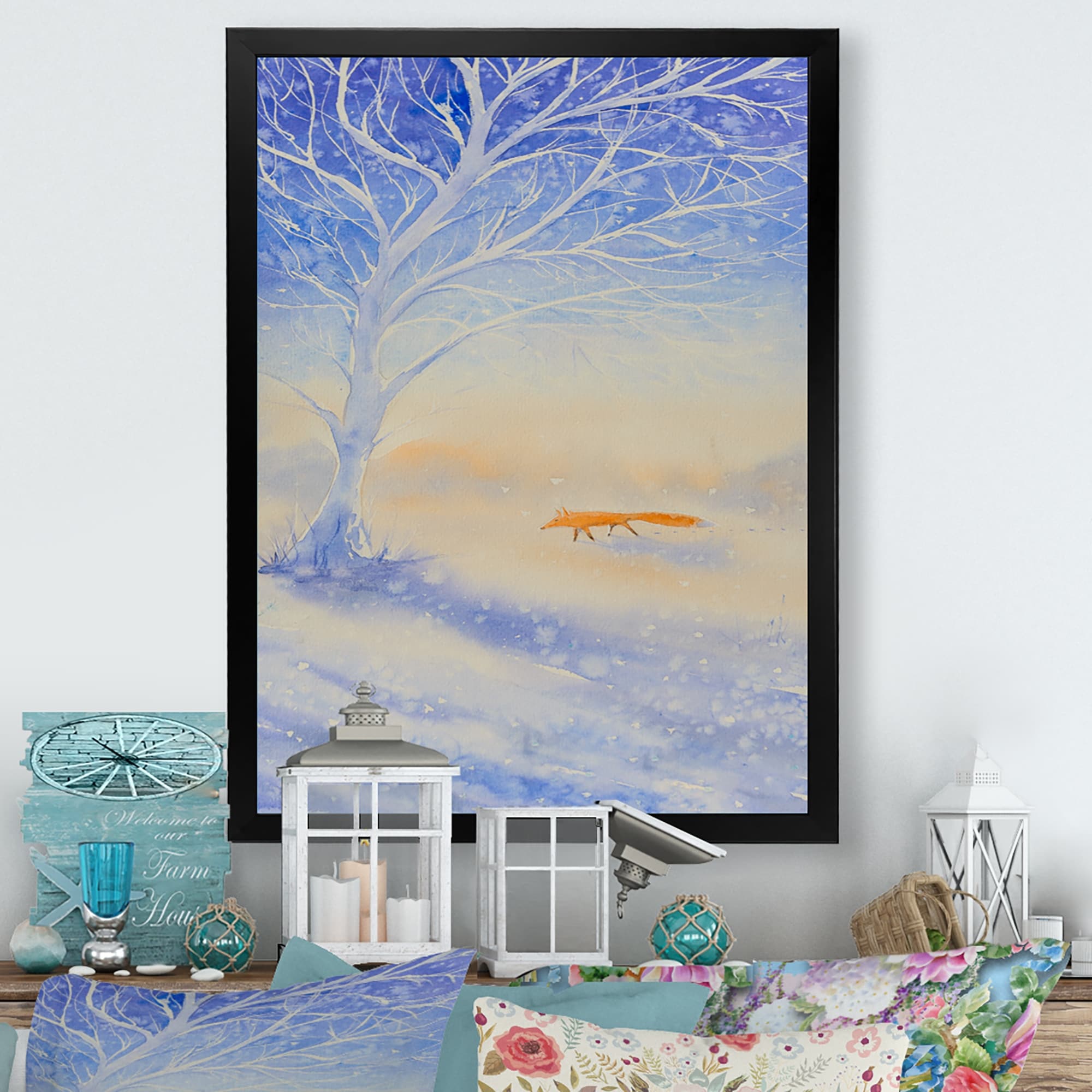 Designart "Orange Fox in Winter Scene" Traditional Framed artwork