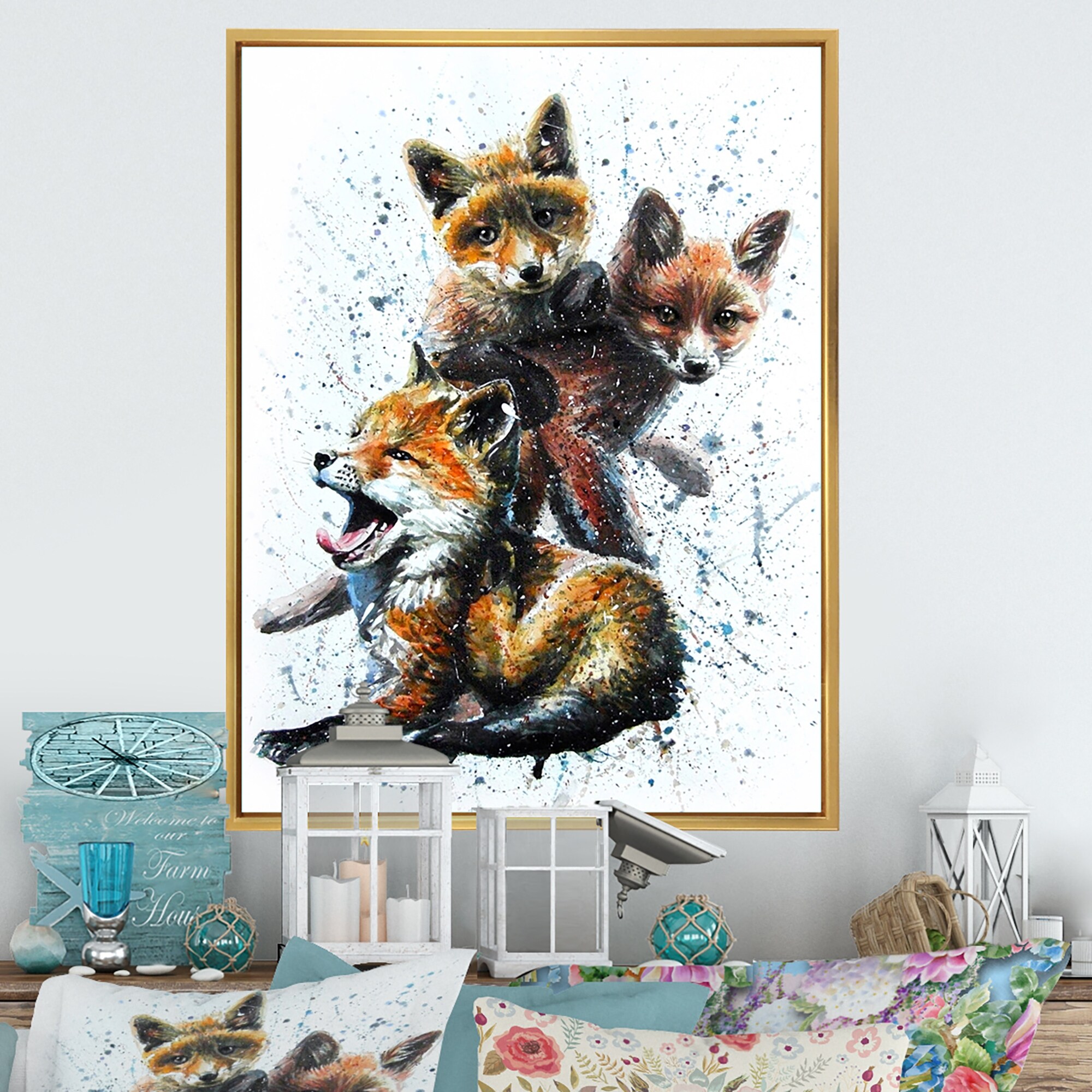 Designart "Little Foxes Painting" Traditional Framed Canvas artwork