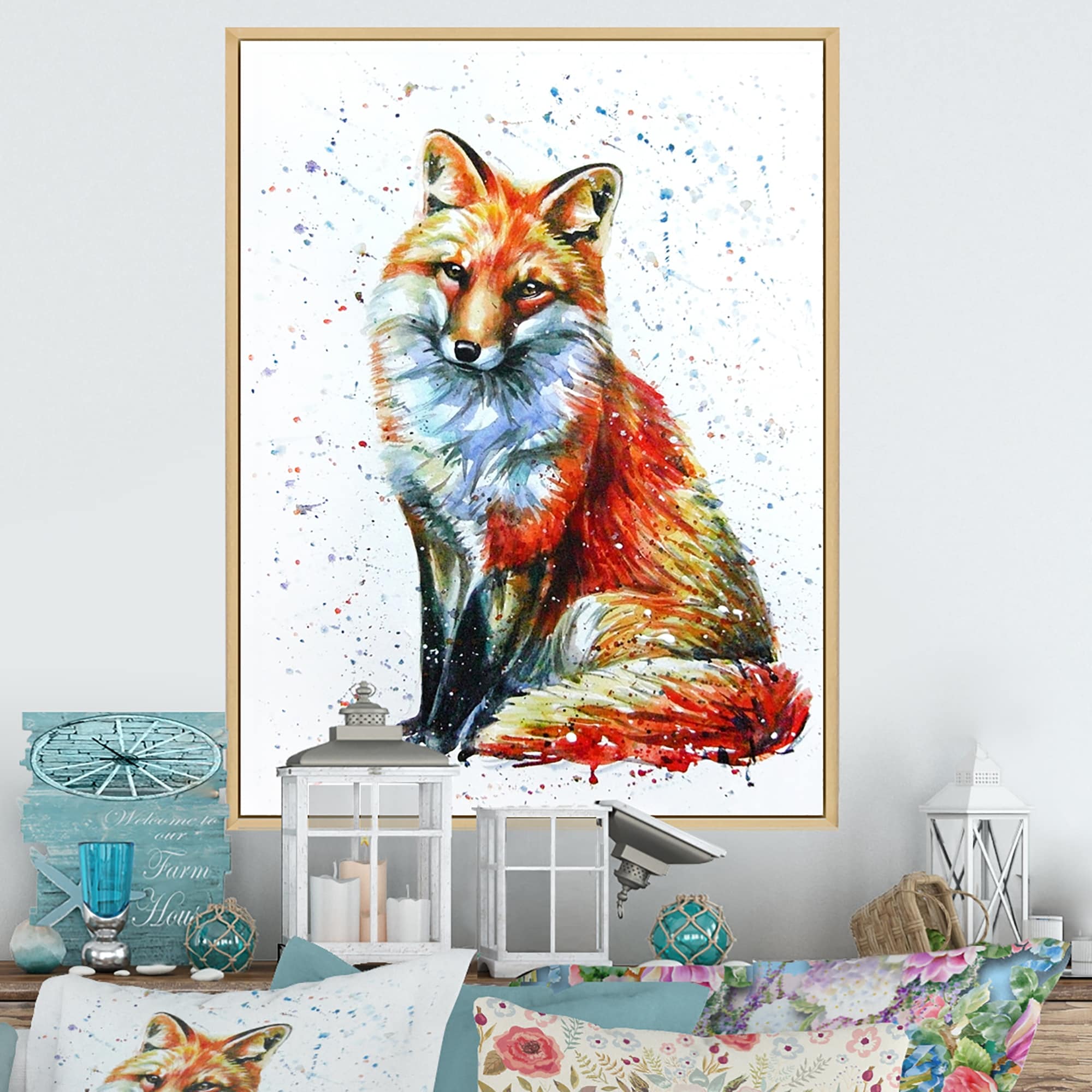 Designart "Fox Painting Wildlife Animals" Traditional Framed Canvas Art Print