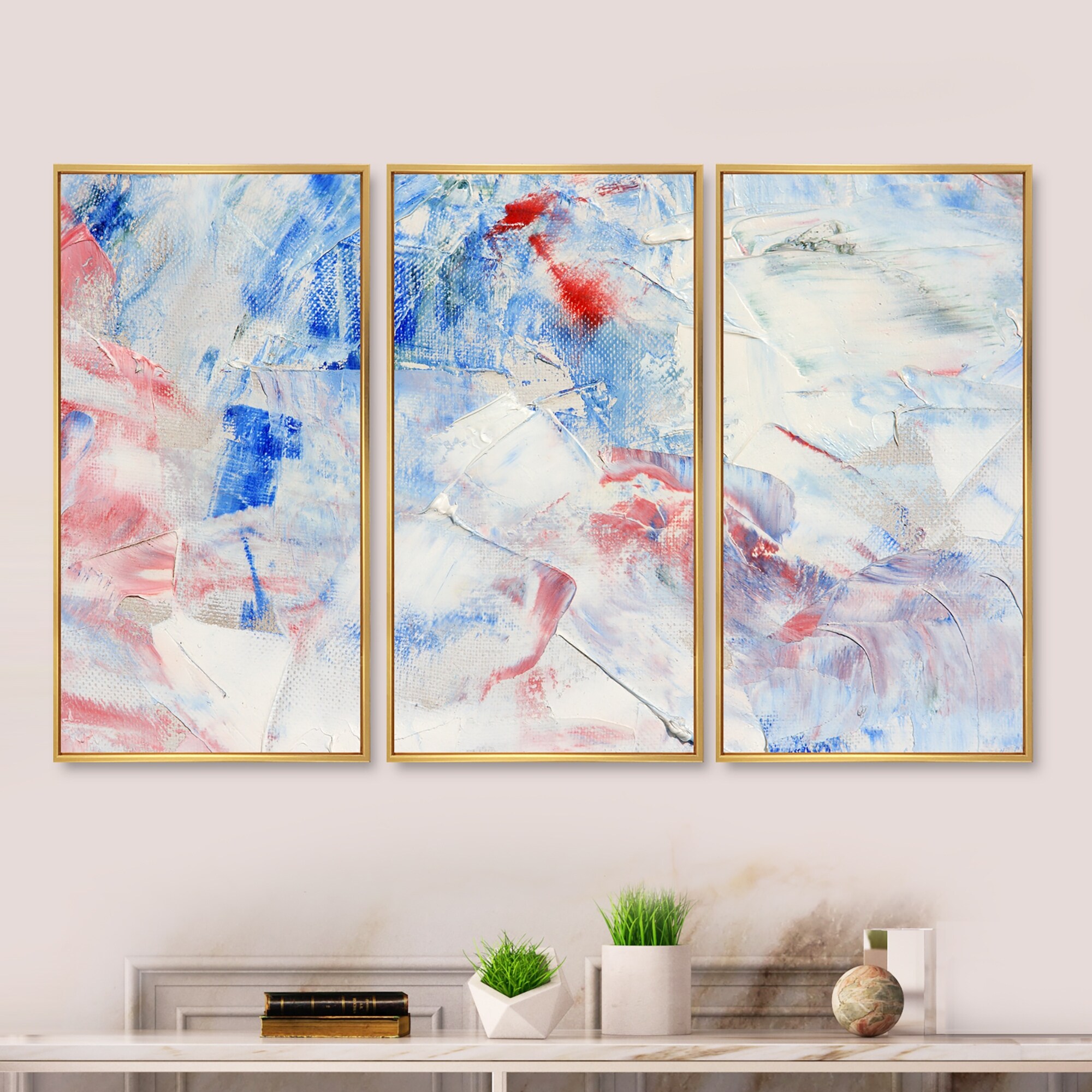 Designart "Abstract Geode Geometric Pink And Red II" Modern Geometric Framed Canvas Art Print - 3 Panels
