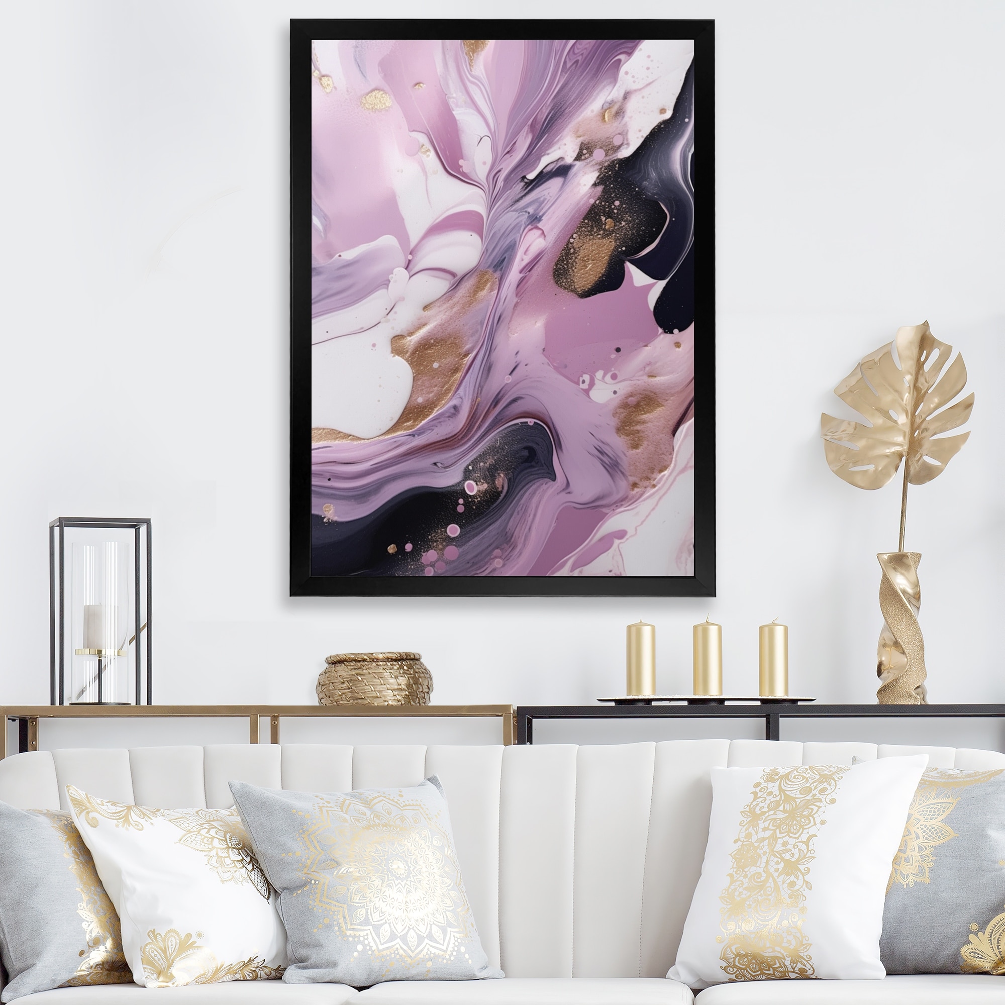 Designart "Pink & Marble Fluid Art" Abstract Framed Art Print