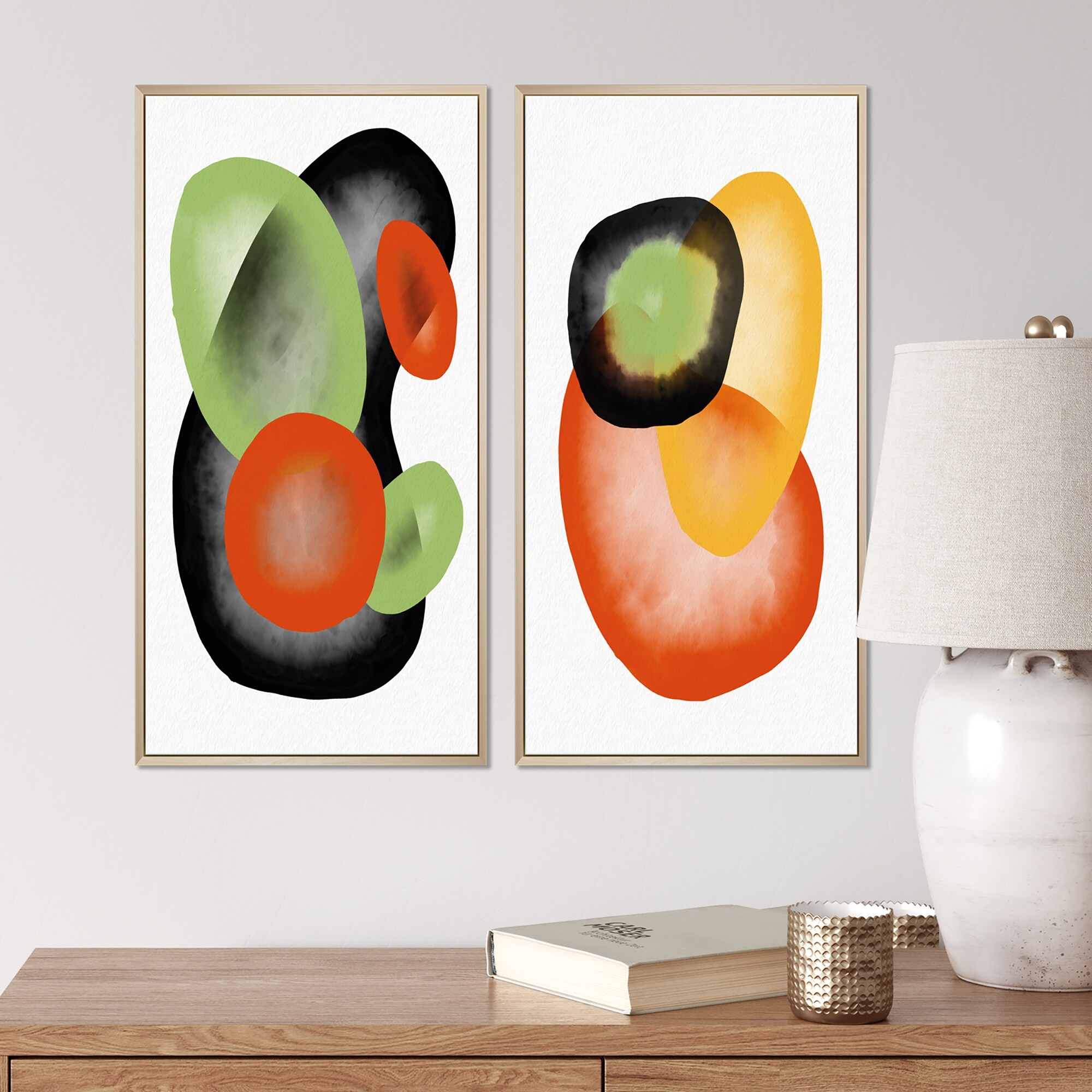 Designart "Abstract Organic Shapes in Retro Gradients IX" Abstract Framed Art Set of 2 Pieces