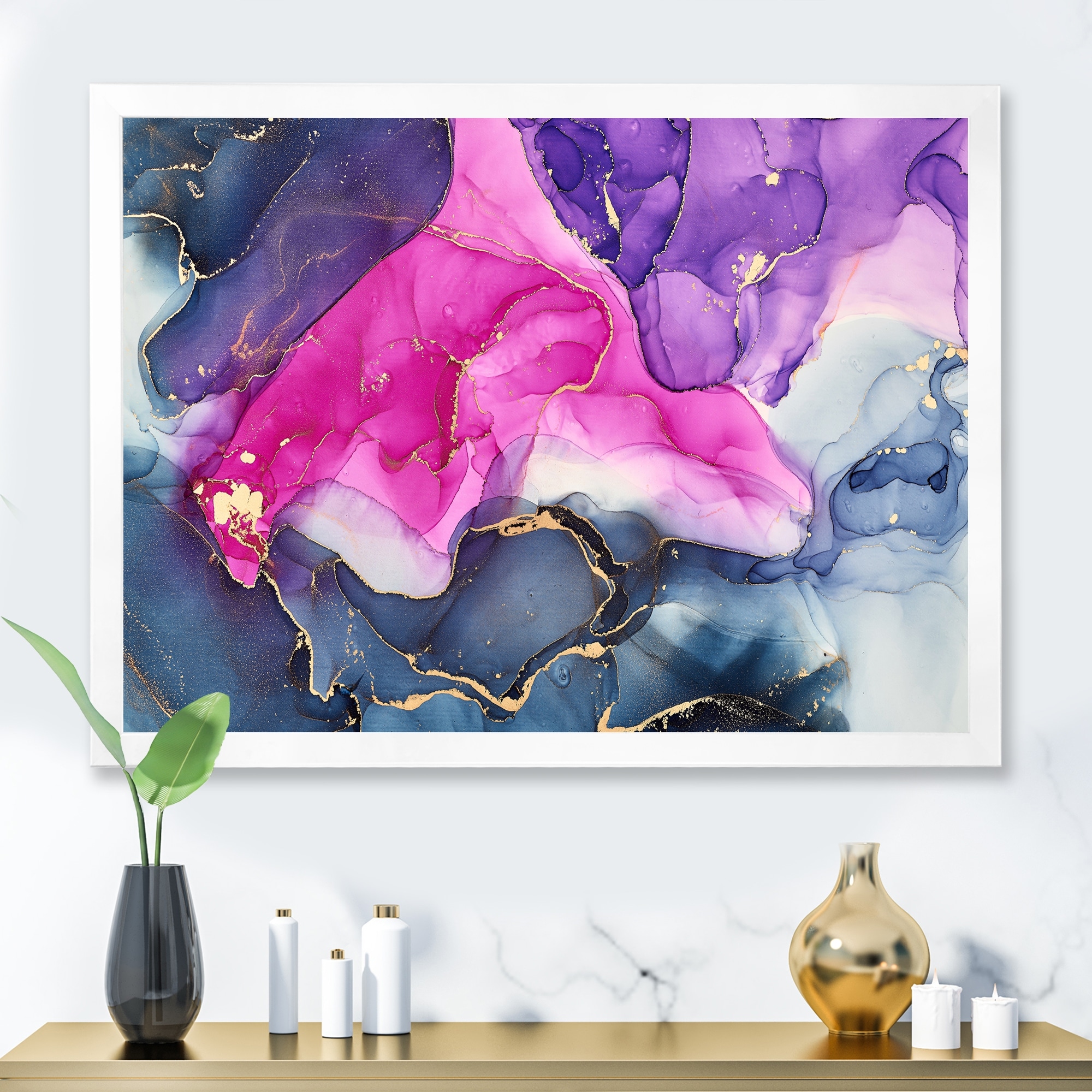 Designart "Pink And Purple Luxury Abstract Fluid Art" Modern Framed Art Print