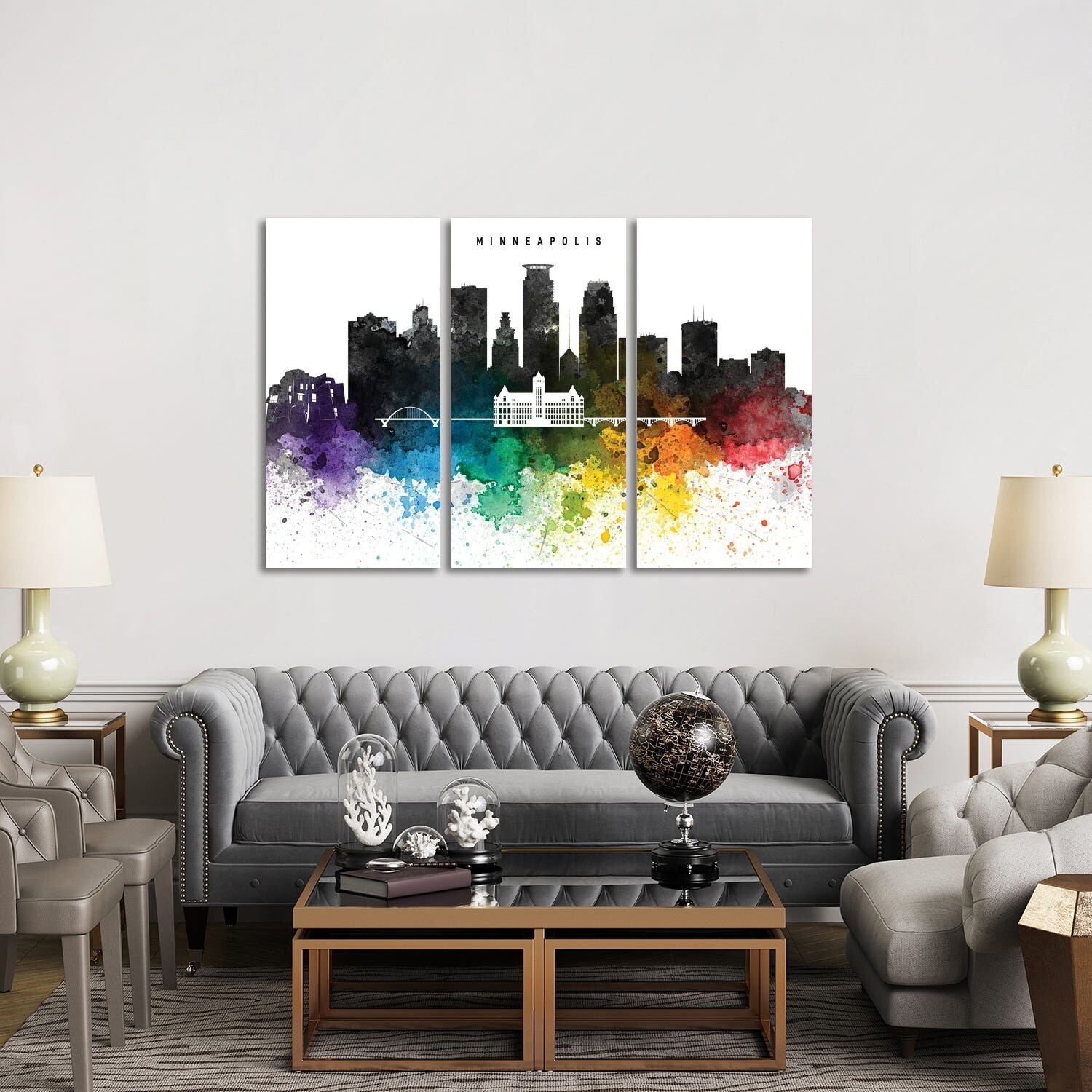 iCanvas "Minneapolis Skyline, Rainbow Style" by WallDecorAddict 3-Piece Canvas Wall Art Set