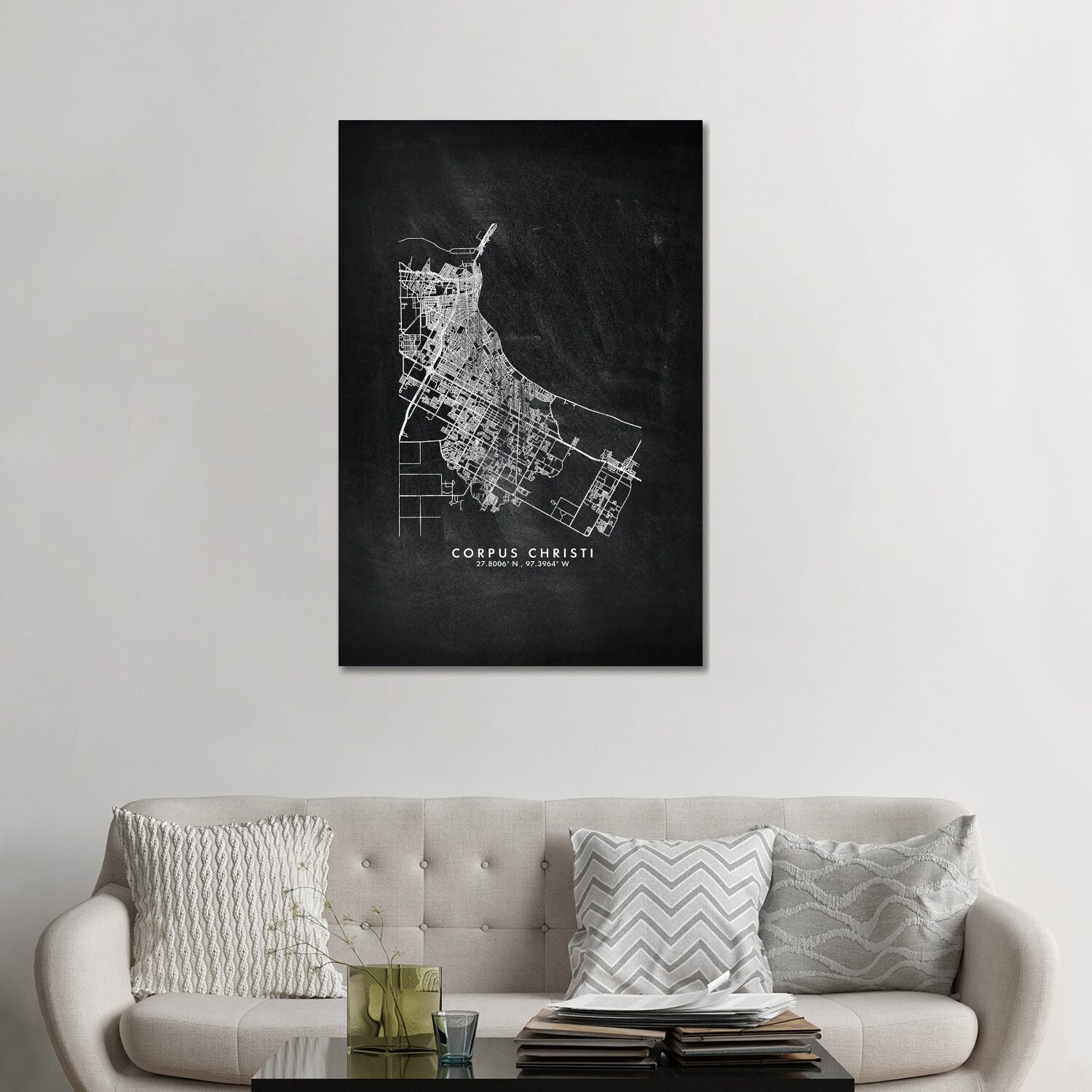 iCanvas "Corpus Christi City Map Chalkboard Style" by WallDecorAddict Canvas Print